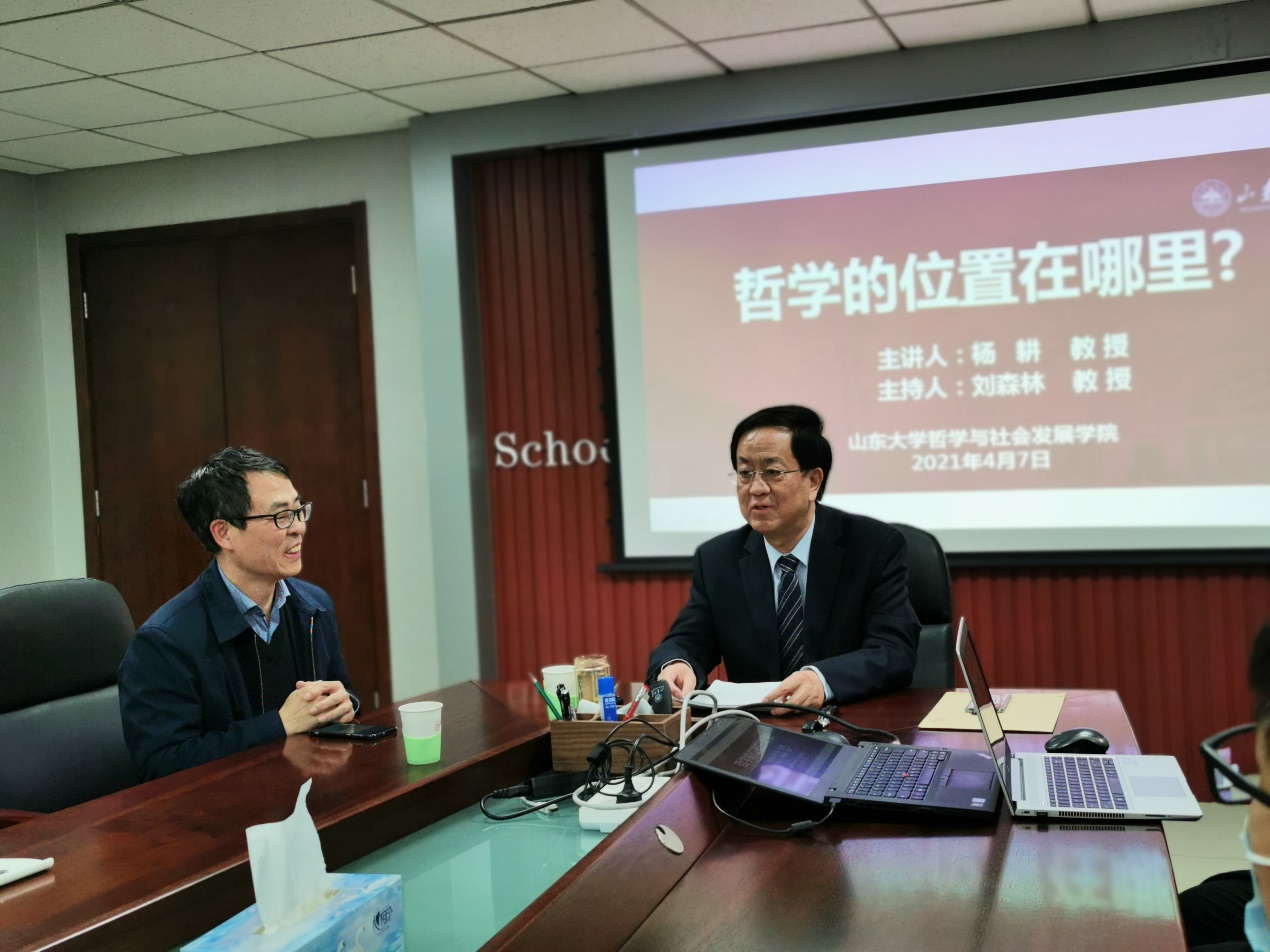 北京师范大学杨耕教授应邀做客“庆祝taptap点点官方网站120周年校庆学术系列活动”,以“哲学的位置在哪里?”为题做了一场精彩的学术报告。报告由taptap点点官方网站院长刘森林教授主持,何中华教授评议。