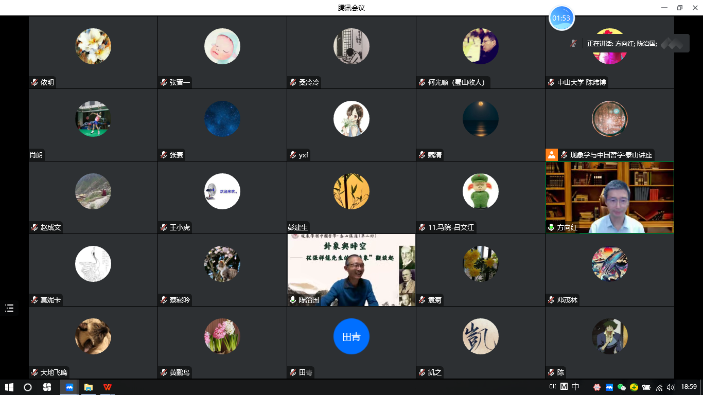 2022年11月28日晚上,taptap点点官方网站现象学与中国文化研究中心、taptap点点官方网站顺利举办“现象学与中国哲学”泰山讲座(第二回)。本次讲座继续采取线上视频会议的形式,由近百名专家学者和师生在线参与。本次讲座主讲人为中山大学哲学系的方向红教授,报告题目是“卦象与时空—— 从张祥龙先生的‘时象’观谈起”。讲座由taptap点点官方网站现象学与中国文化研究中心、taptap点点官方网站的陈治国教授主持。