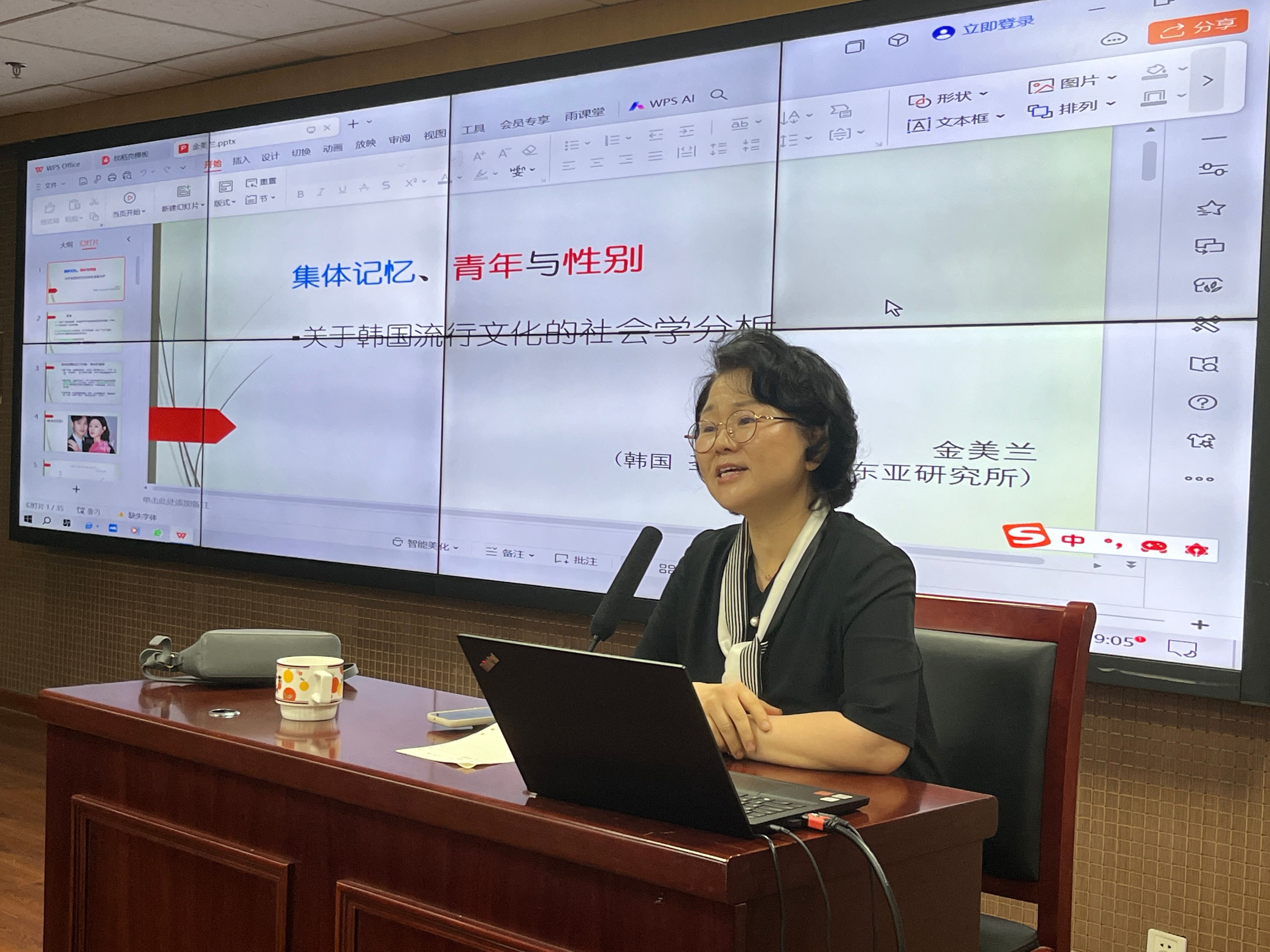 2024年5月10日晚,韩国圣公会大学教授、东亚文化与性别领域的知名学者金美兰应邀在taptap点点官方网站进行了以“集体记忆、青年与性别:关于韩国文化的社会学分析”为主题的专题讲座,该学院社会学系教授王向贤予以主持。