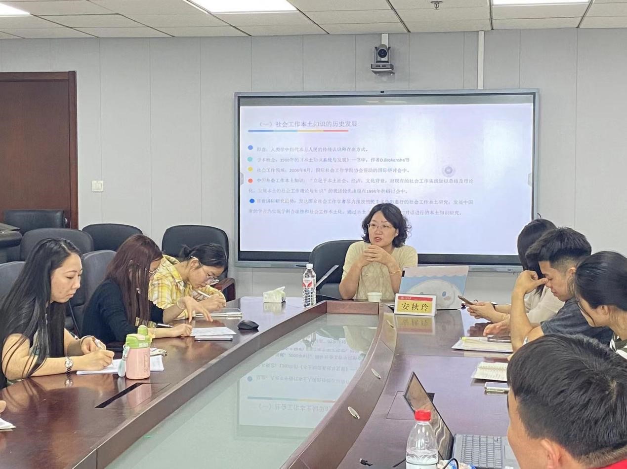 首先,安秋玲教授在讲座中对社会工作本土化知识的定义进行了深入剖析,强调了在本土文化和社会背景下理解和运用社会工作知识的重要性。随后,她详细阐述了社会工作干预过程中知识生产的五阶段模式,包括明确问题与开发项目理论、创建材料并形成干预手册、以有效性的测试来完善确认项目成分、干预实施和传播研究结果以及推广项目材料。此外,安教授还探讨了知识转化、知识转移、知识改编和知识创作四条社会工作干预中知识生产路径,回答了“怎样理解社会工作知识生产”以及“社会工作干预过程中是否有本土性知识生产和如何生产”的问题,为与会师生提供了宝贵的学术见解和实践指导。