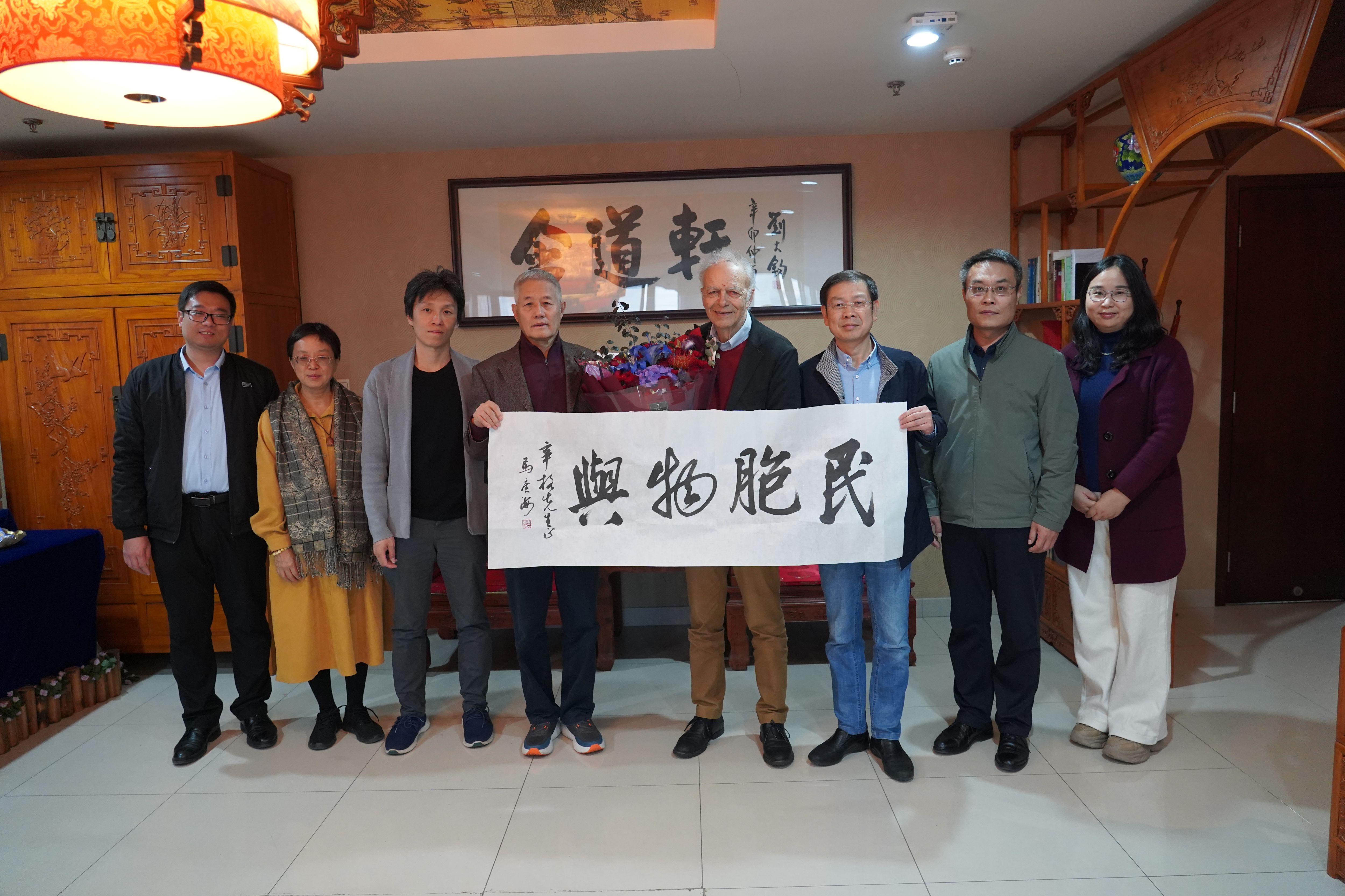 taptap点点官方网站党委书记梅强,taptap点点官方网站宣传部副部长刘金帅,taptap点点官方网站人文社科研究院副院长毛永强与taptap点点官方网站犹太与跨宗教研究中心主任傅有德教授,在知新楼含道轩与彼得·辛格教授进行了亲切交流,并向他赠送了马广海教授的书法作品“民胞物与”。taptap点点官方网站动物保护研究中心向辛格教授颁发了荣誉主任的聘书。