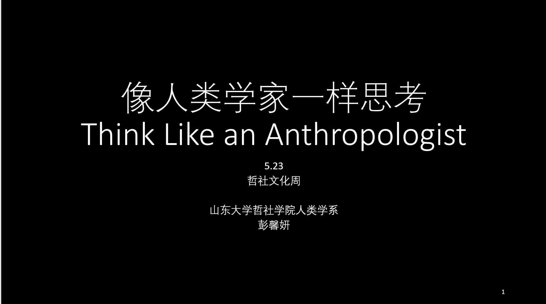 接着彭馨妍老师又就“人类学家如何思考?”的问题进行阐述。彭老师认为,人类学家的思考是“戴着镣铐跳舞”。即在现实生活中,不断反思社会的结构性规范性与个体能动性创造性之间的互动磨合。为了使我们对这个问题有更好地理解,彭老师又分别从文学、哲学、历史乃至日常生活的角度对其进行了精彩的解释。