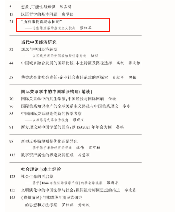 近日,taptap点点官方网站副研究员张红军在《学术月刊》2024年第5期上发表了题为《“所有事物都是永恒的”——论塞维里诺的虚无主义批判》的高质量学术论文。