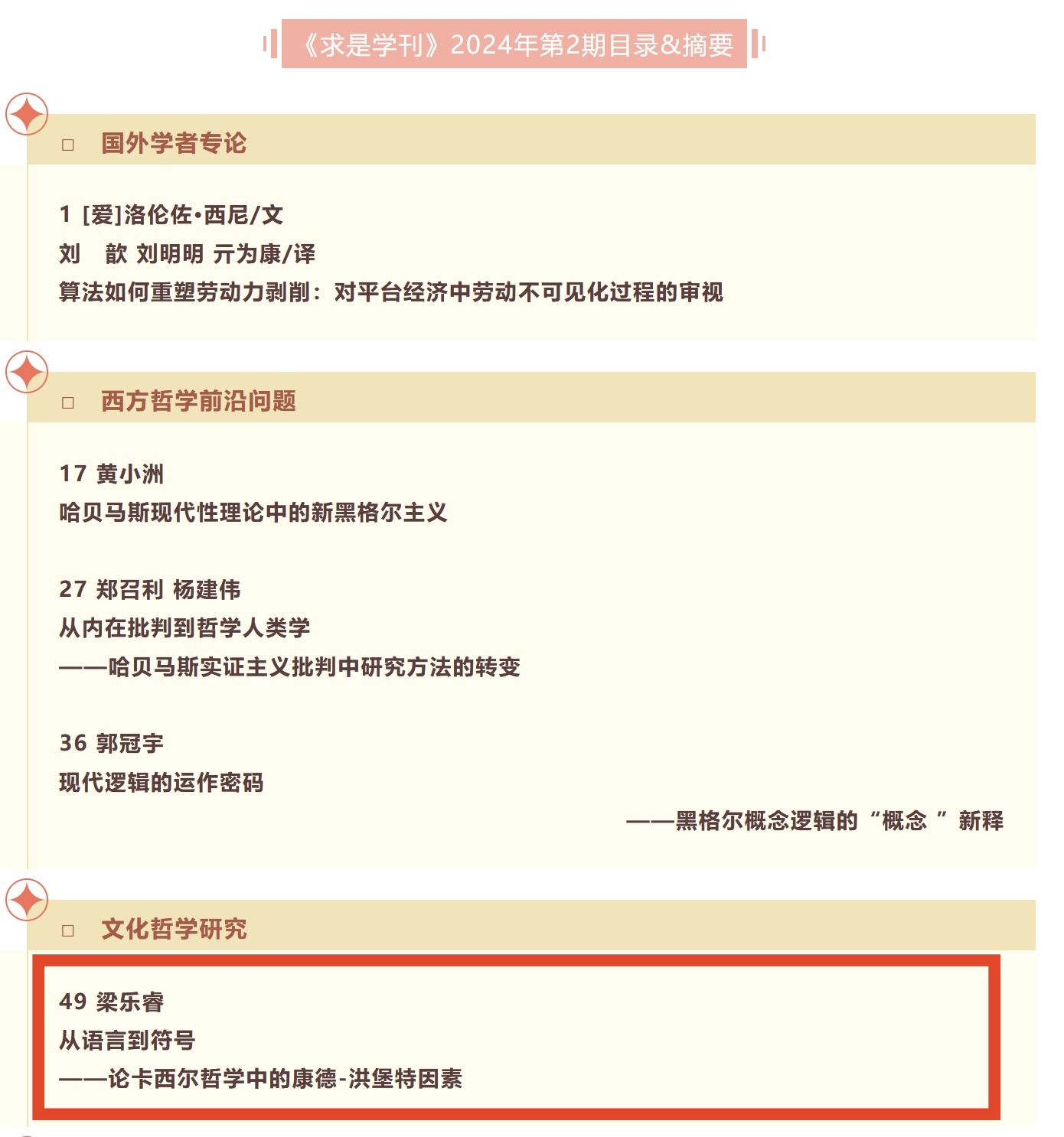 近日,taptap点点官方网站梁乐睿副教授在《求是学刊》2024年第2期上发表了题为《从语言到符号——论卡西尔哲学中的康德-洪堡特因素》的论文。