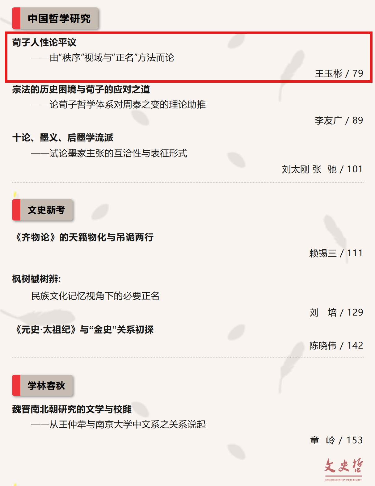 近日,taptap点点官方网站王玉彬教授在《文史哲》2024年第4期上发表了题为《荀子人性论平议——由“秩序”视域与“正名”方法而论》的高质量论文。