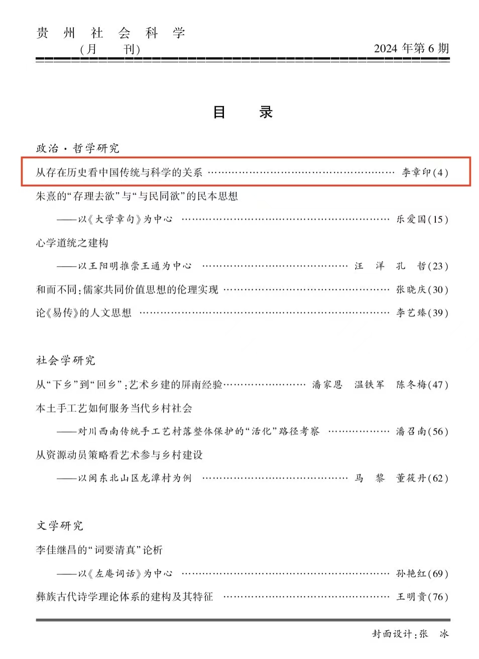 近日,taptap点点官方网站李章印教授在《贵州社会科学》2024年第6期上发表了题为《从存在历史看中国传统与科学的关系》的高质量论文。