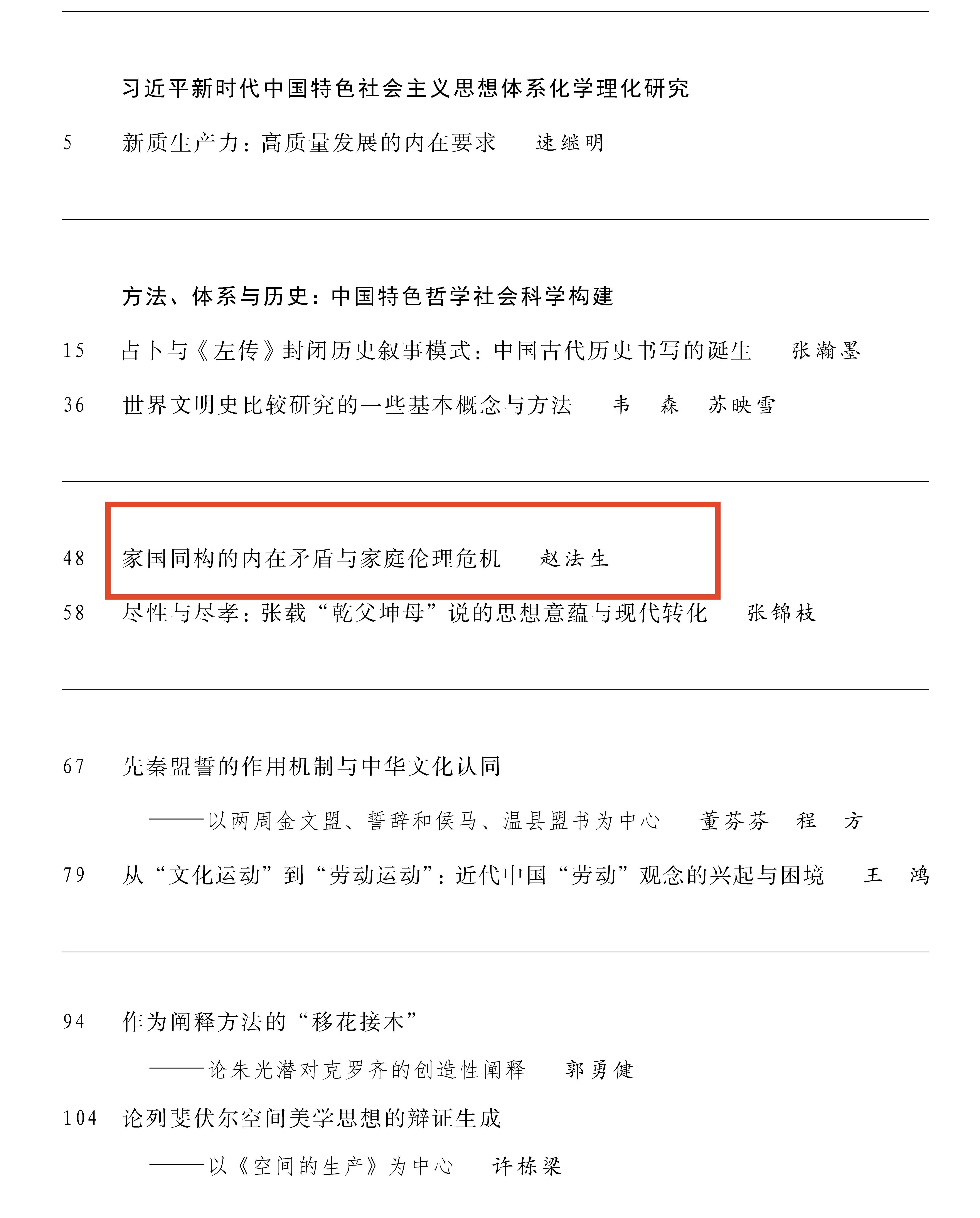 近日,taptap点点官方网站赵法生教授在《社会科学》2024年第9期上发表了题为《家国同构的内在矛盾与家庭伦理危机》的高质量论文。