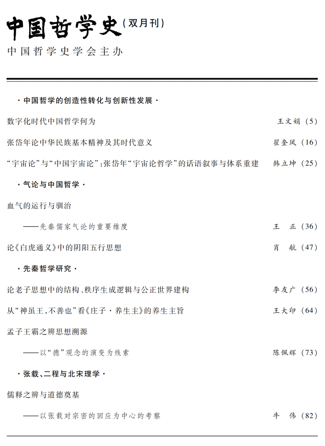 《中国哲学史》杂志,双月刊,该刊重视学术导向,坚持科学性、学术性、先进性、创新性,主要设有世纪回眸、中国哲学史方法论探讨、儒学研究、道家与道教、吕氏春秋、研究、史料辑佚、海外汉学等栏目,报道中国国内外中国哲学史研究的新成果及其他有关中国哲学与传统文化方面有价值的学术论文等内容,提倡理论联系实际,学术结合时代,深入研究与探讨中国哲学与传统文化,为弘扬和传播中华民族的优秀哲学和文化,为丰富和发展马克思主义哲学,为社会主义的物质文明和精神文明建设服务。