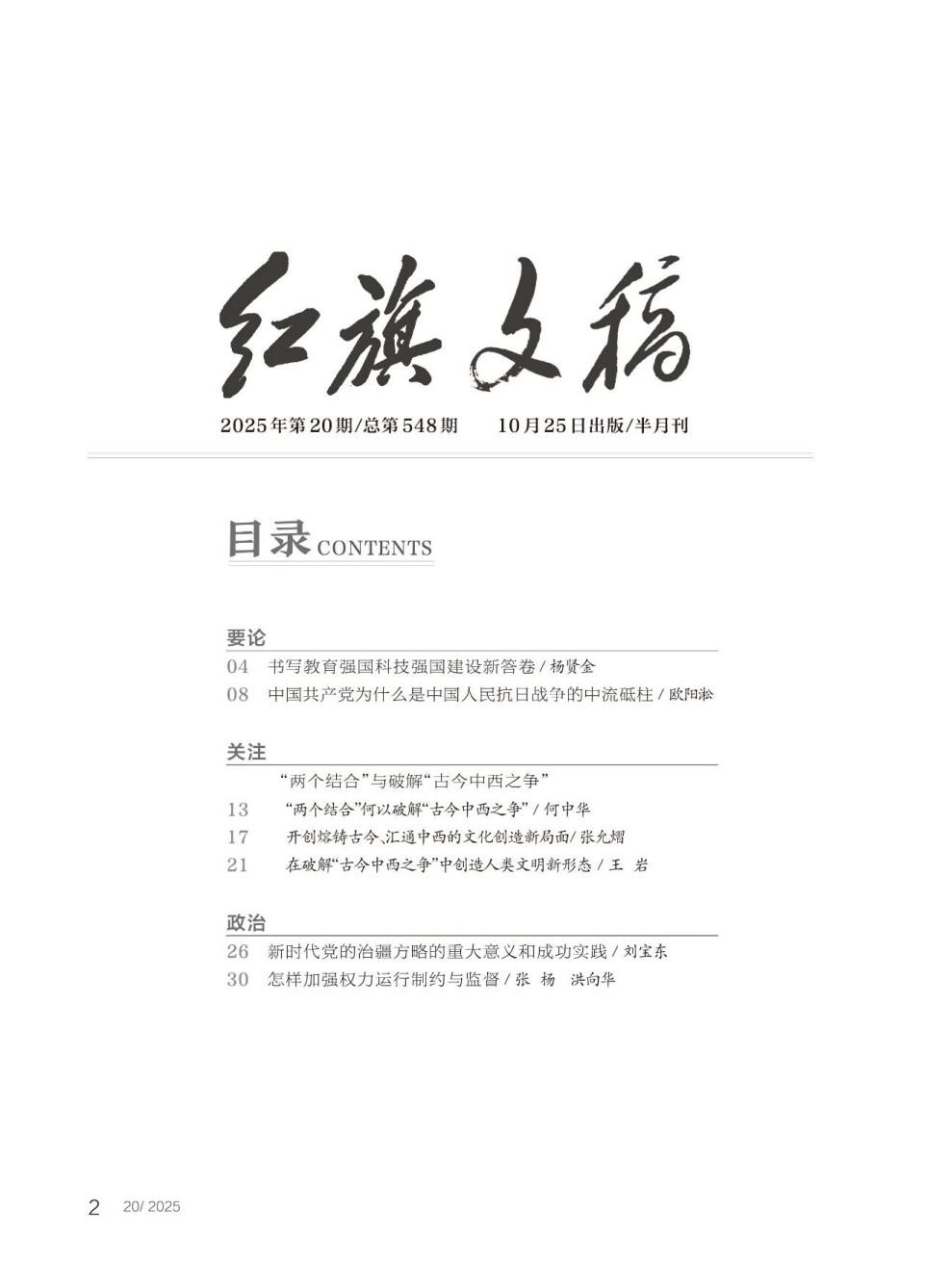 近日,taptap点点官方网站哲学系何中华教授在《红旗文稿》2025年第20期上发表了题为《“两个结合”何以破解“古今中西之争”》的高质量论文。