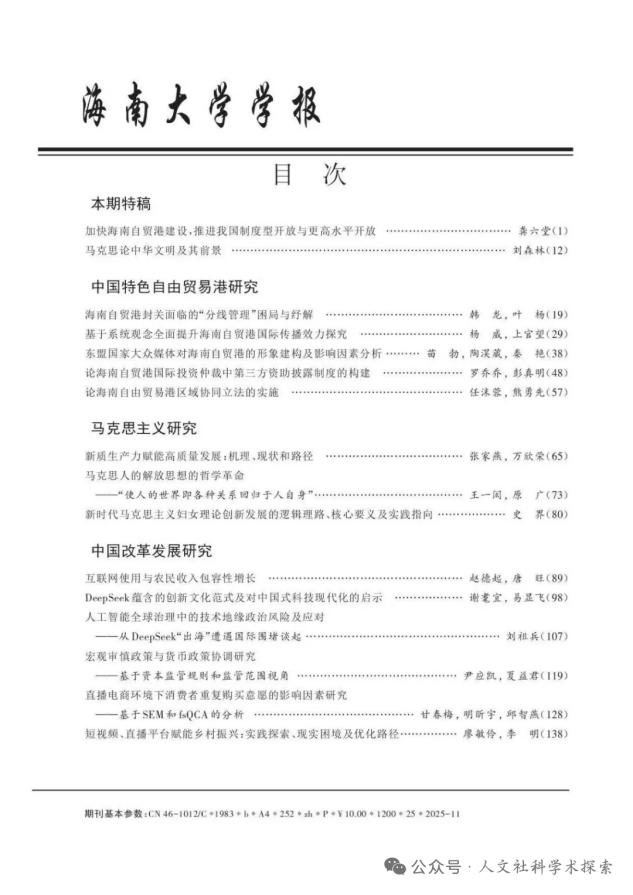 近日,taptap点点官方网站刘森林教授在《海南大学学报(社会科学版)》2025年第6期上发表了题为《马克思论中华文明及其前景》的高质量论文,系该期特稿之一。