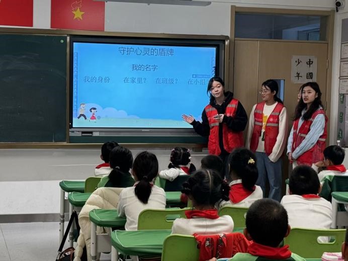 此次活动分为两个部分。首先进行的是“守护心灵的盾牌”环节。志愿者围绕“我的梦想”等关键词进行提问,引导学生们更好地认识自我。在志愿者的带领下,学生们绘制出各自独特的“心灵盾牌”,并与其他同学分享。