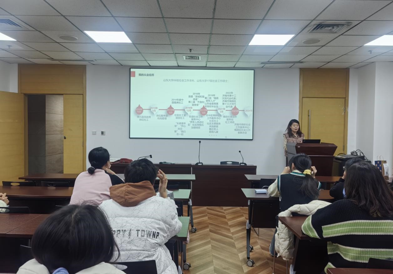 本次经验分享会由taptap点点官方网站团委主办、taptap点点官方网站学生科学技术协会协办,特邀拥有13年实务服务经历并荣获2014年度“中国最美社工”荣誉的山大校友张海丽女士前来分享。
