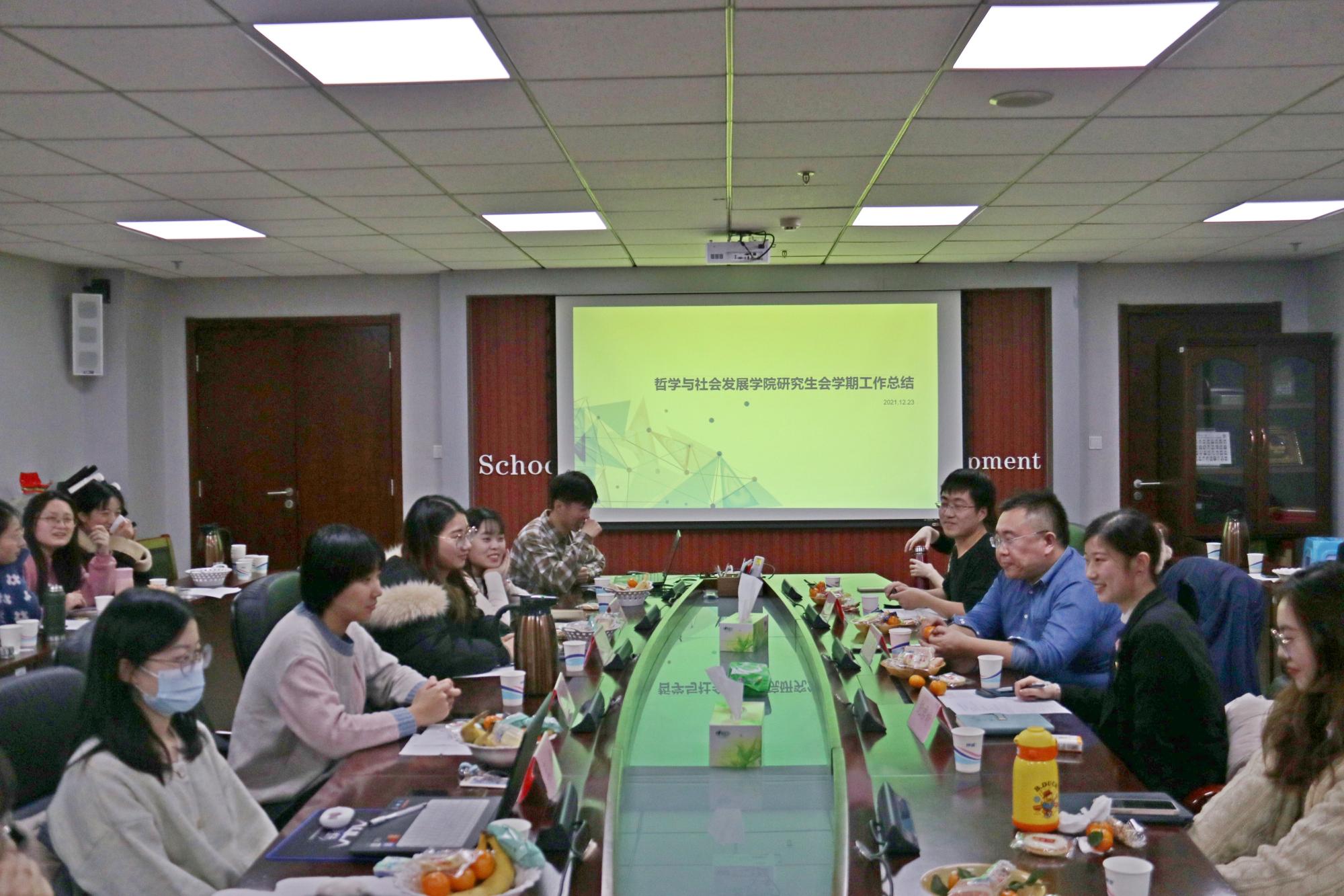 2021年12月23日晚,taptap点点官方网站第22届研究生会第二次全体会议暨2021-2022学年上学期工作总结茶话会在知新楼A1618会议室成功召开。学院辅导员冯守刚及研究生会全体成员参加活动。
