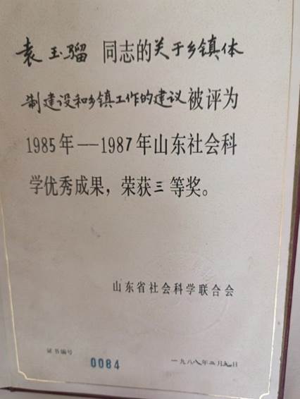 1988年二月份,当我的《关于乡镇体制建设和乡镇工作的建议》被评为1985年-1987年山东社会科学优秀成果三等奖之时,我也被免去乡党委书记职务,调到县委党史委任副主任,虽然半年后又明确为主任,但我知道,我的政治前途到此为止了。