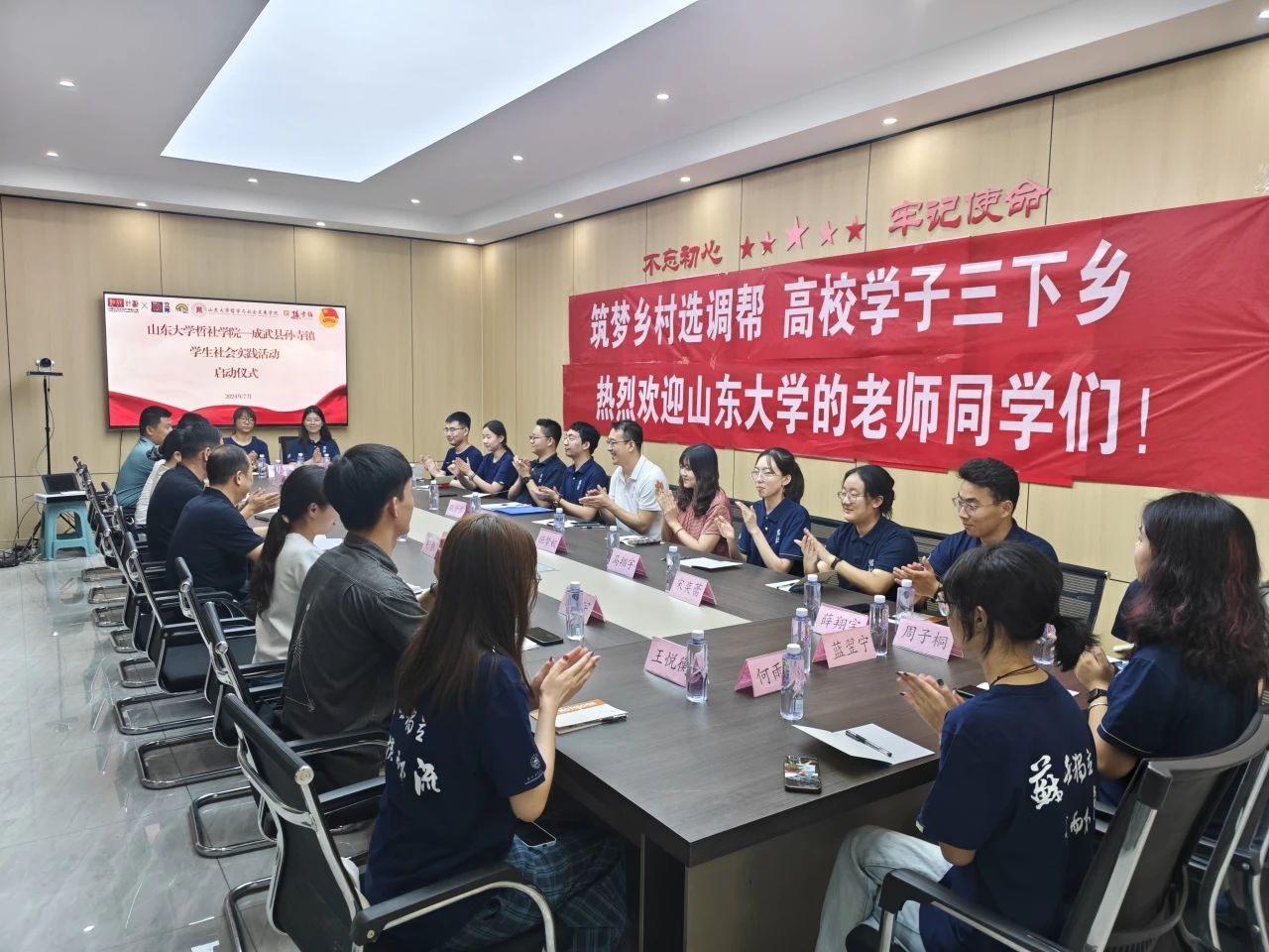 7月20日下午,taptap点点官方网站“哲心绛韵”支教服务队与成武县孙寺镇在孙寺镇党群服务中心会议室联合举办了“哲心绛韵”社会实践活动启动仪式。仪式介绍了出席的成武县县委组织部副部长、县委老干部局局长王继军,孙寺镇党委书记王建,县委组织部干部一室主任刘环,孙寺镇党委副书记郭文婷,孙寺镇宣传委员王崇旭,省生态环境厅选调生、谢楼村党支部书记助理潘天宇,成武县孙寺镇谢楼小学校长王照勇等领导干部,以及taptap点点官方网站团委书记班梦姣,社会学系教师解玉喜。同时,支教服务队的14名队员也列席会议。