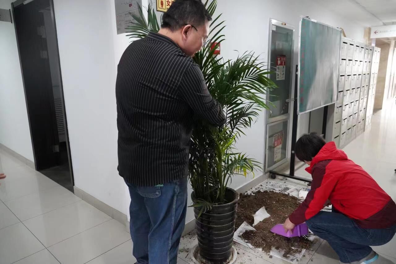 活动中,支部党员传承我党艰苦奋斗、勤俭节约的工作作风,收集、整理和重填原有花盆,按照花盆的大小、采购一些适宜的花草绿植。材料备齐,大家分头行动,填土固壤、浇水归位,互相配合、共同协作,圆满完成。看着一盆盆赏心悦目的绿植,大家脸上都漾溢着喜悦的笑容,体验了劳动带来的快乐。