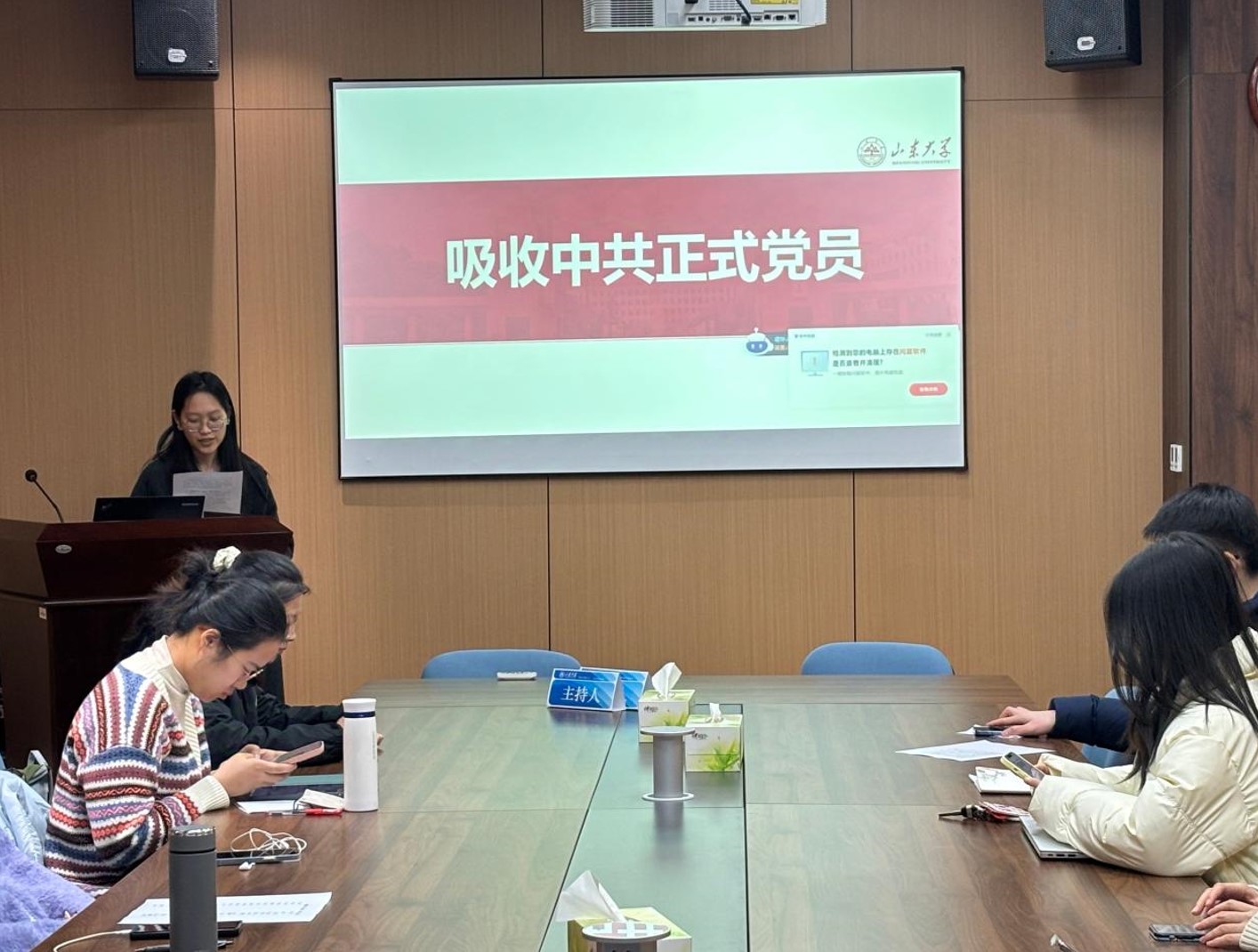 大会听取了中共预备党员刘若飞关于个人在政治思想、生活学习和日常服务方面的情况汇报,由张琳艳介绍支部委员会对其考察意见,耿倩和齐祥慧两位同志发表党员意见并推荐其转为中共正式党员。经过民主投票,大会完成了中共预备党员转正接收事宜。