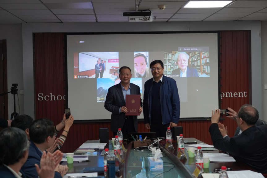 邢占军、刘森林分别代表学校、学院,向在现场参会的委员代表张文新教授颁发了taptap点点官方网站兼职讲席教授聘任证书和战略咨询委员会聘书。