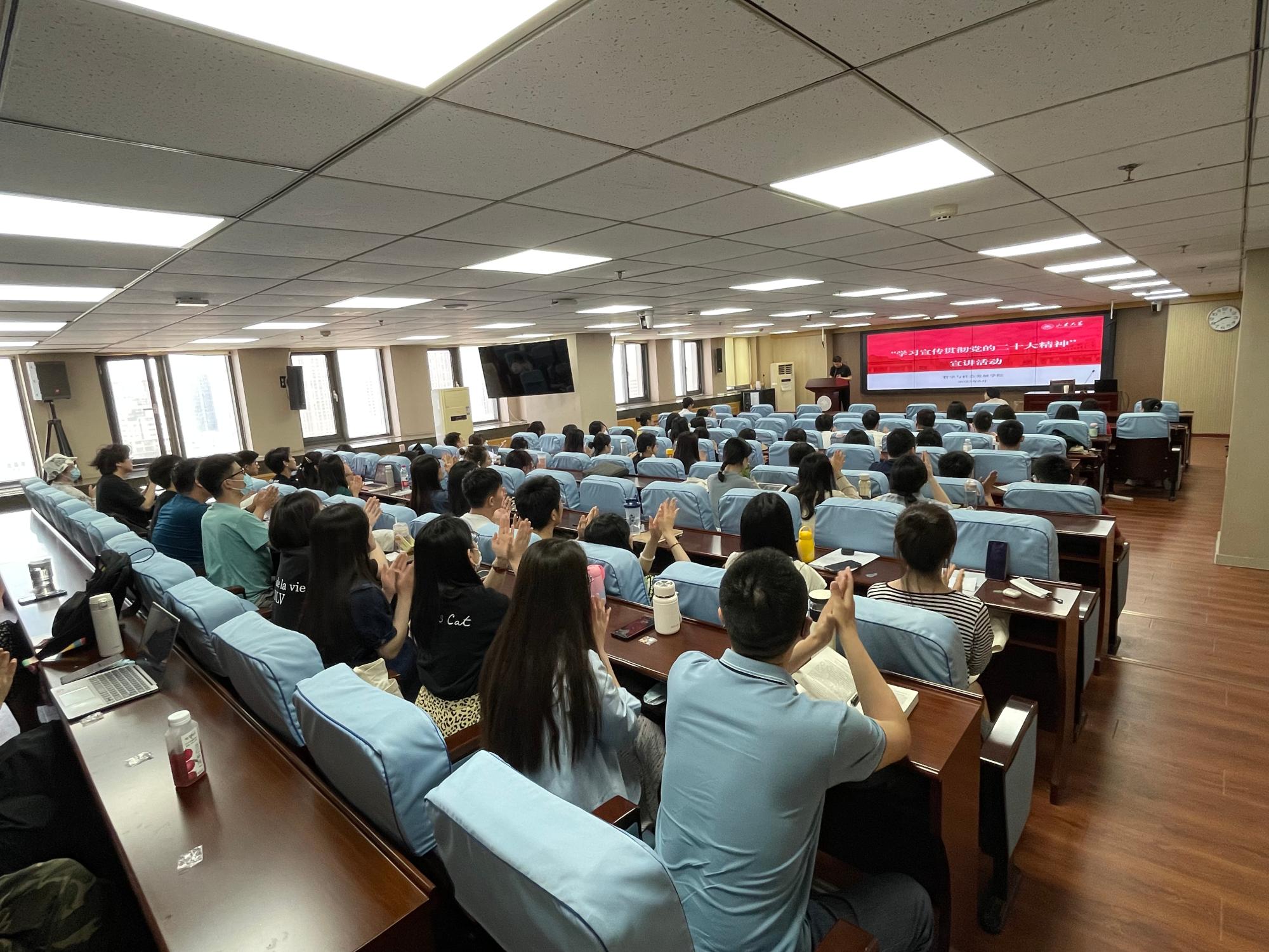 教育大会第二阶段还邀请taptap点点官方网站党的二十大精神宣讲团为毕业生党员进行主题宣讲。宣讲团成员高睿晗以“肩负使命任务:用习近平新时代中国特色社会主义思想武装新时代青年”为主题,分享了青年学生担当使命的理解与感悟;刘议莲以“青春礼赞二十大,共创美好新生活”为主题进行宣讲;郝杰以“把握共同富裕内涵,奋力绘就美好画卷”为主题,讲述了共同富裕的深刻内涵;闫卓璨以“增进民生福祉,提高人民生活品质” 强调了“坚持人民至上”。