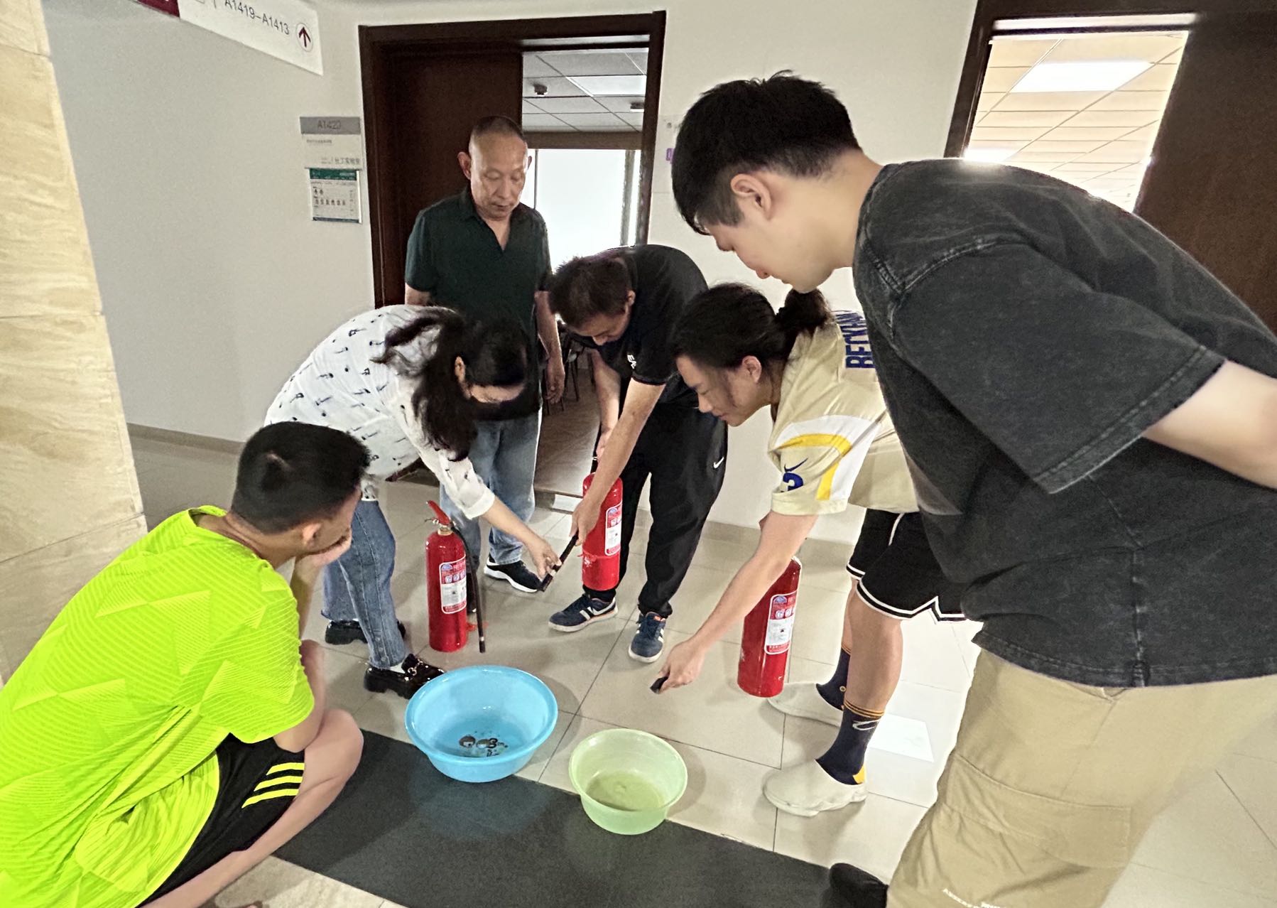 6月13日,学院开展了实验室安全应急演练活动。本次应急演练活动分为两部分进行,一是学习灭火器的使用,实验室管理人员向同学们讲解了灭火器的使用方法和注意事项,并模拟火灾发生现场演练灭火器的使用;二是火灾逃生演习,学院警报声响起,实验室里的师生立即停止教学科研活动,打湿毛巾,掩住口鼻,弯腰快步走出教室,沿走廊、楼梯两侧迅速撤离。此次演练使师生进一步掌握了在发生火灾时的紧急情况下如何积极应对,同时也为日后学校消防安全工作奠定了良好的基础。