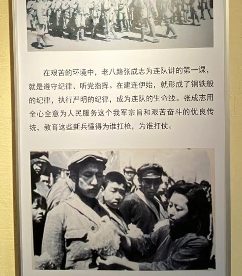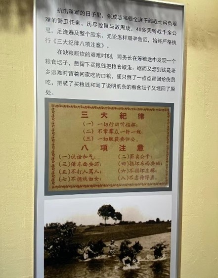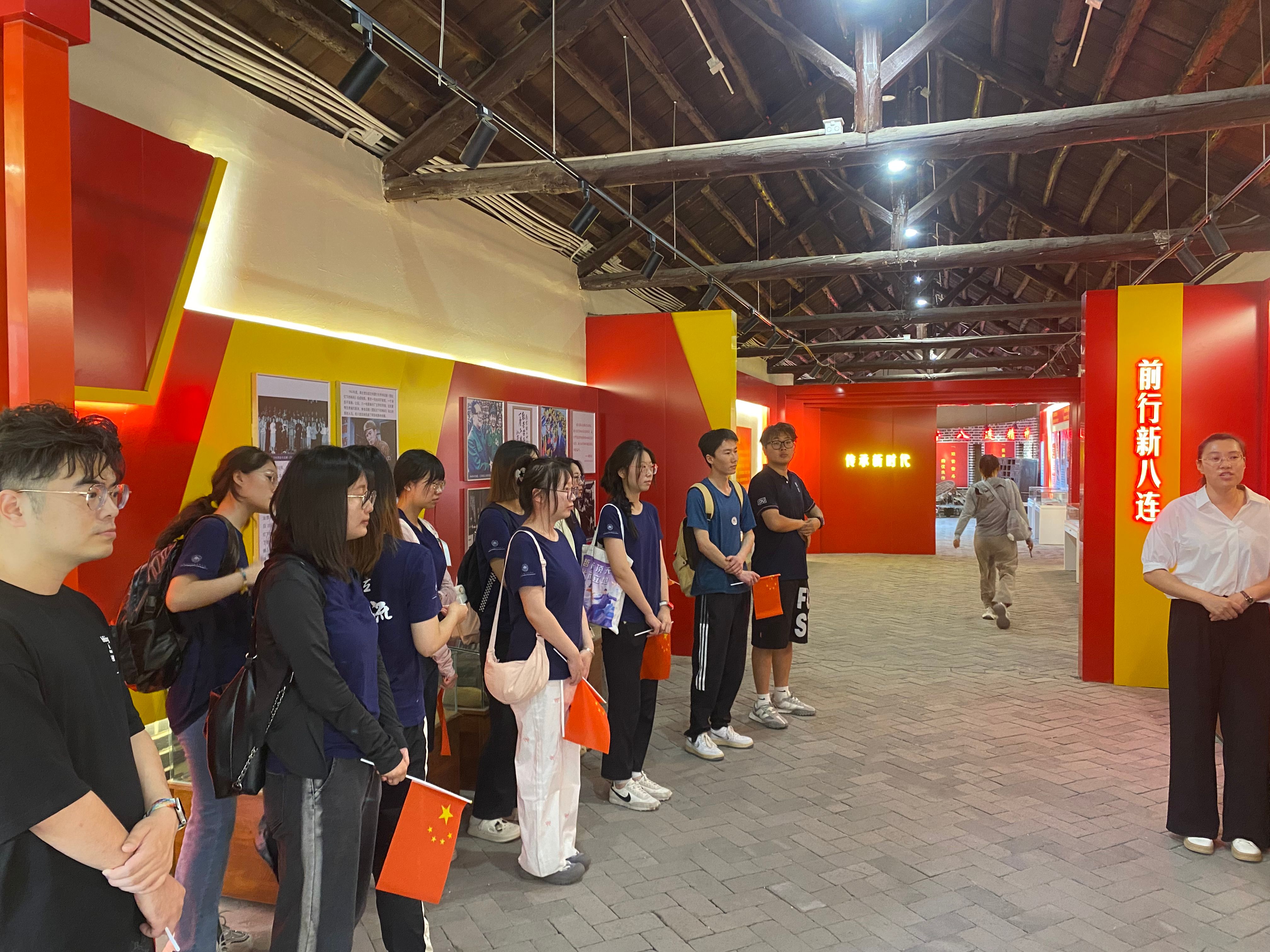 7月1日上午,在莱西市委组织部、望城街道办和龙水新村的大力支持下,社会学系教工党支部教师党员与同学们来到龙水新村小院村“南京路上好八连”展览馆接受党纪学习教育,师生深刻学习领会了遵守纪律和听党指挥在革命军队打胜仗中的决定性作用。“好八连”是解放战争期间从小院村走出去的一支人民连队,起初作为华东军区的一支辎重连负责前线作战部队的后勤运输任务。后来随着解放战争形势的发展和革命的需要,“好八连”逐渐承担起作战任务。毛泽东主席曾为为八连写下了一首杂言诗《八连颂》歌颂了“好八连”身居闹市一尘不染,全心全意为人民服务,成为全军艰苦奋斗、拒腐防变的一面旗帜。在学习过程中,全体师生聚精会神地感受党的纪律对于军队建设以及党和国家事业发展的重要性,也对中国共产党领导下的军队与人民群众的血肉联系、艰苦奋斗的光荣传统有了更深刻的认同。