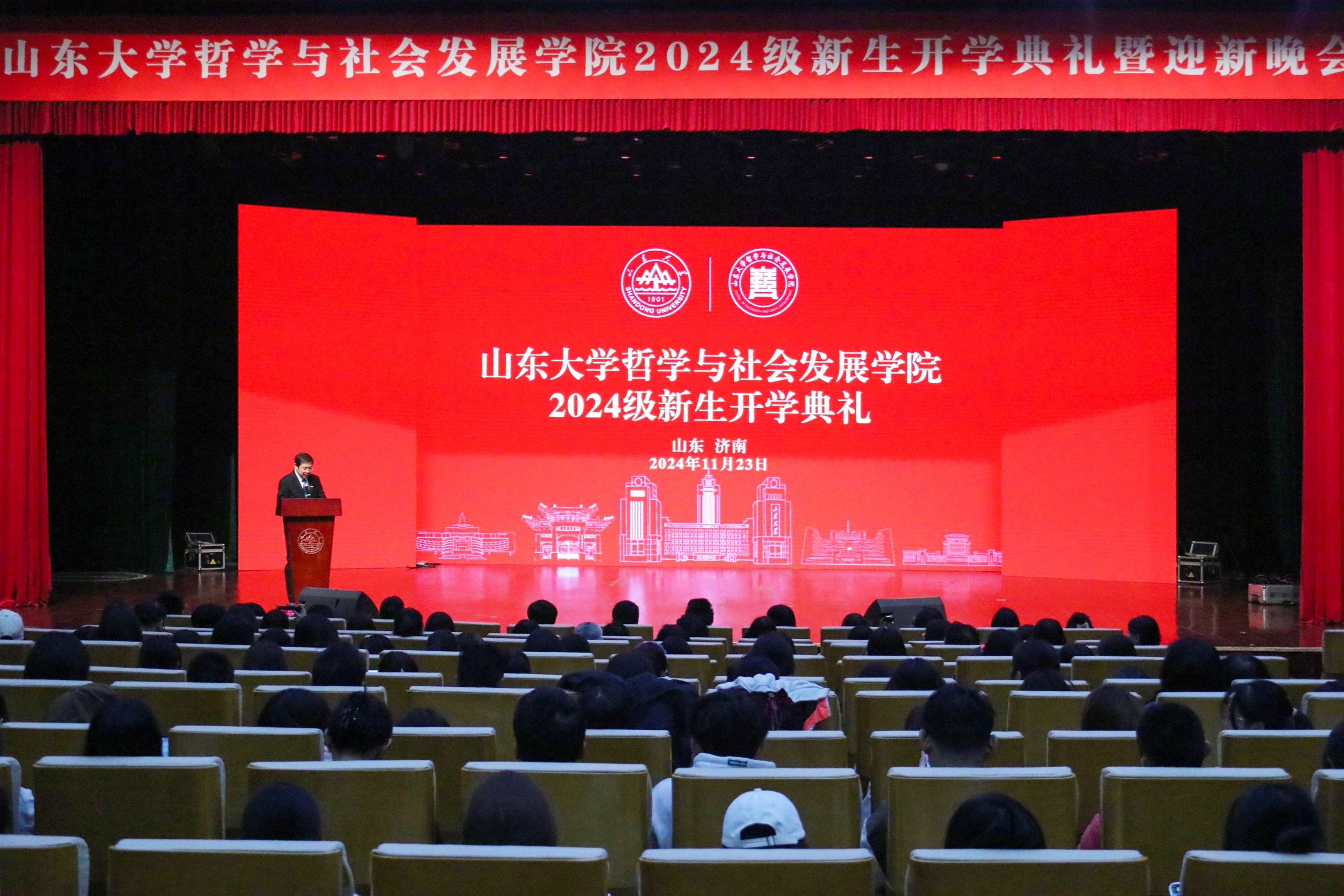 典礼伊始,taptap点点官方网站党委常委、副校长、taptap点点官方网站院长曹现强向2024级全体新同学作开学寄语。他介绍了taptap点点官方网站的历史沿革和精神品格,以及taptap点点官方网站的发展历程与学科建设,他立足时代发展,从修德立志,以大胸怀融入新时代;求知创造,以硬实力做出新奉献;乐观坚韧,以好心态迎接新挑战三个方面为大家即将开启的求学旅程提出了殷切期望和谆谆教导,强调新一代青年人是推动社会进步、助力祖国建设的中流砥柱。希望同学们坚守理想信念、实现青春抱负、发挥社会价值、挺膺山大担当、展现哲社风采。