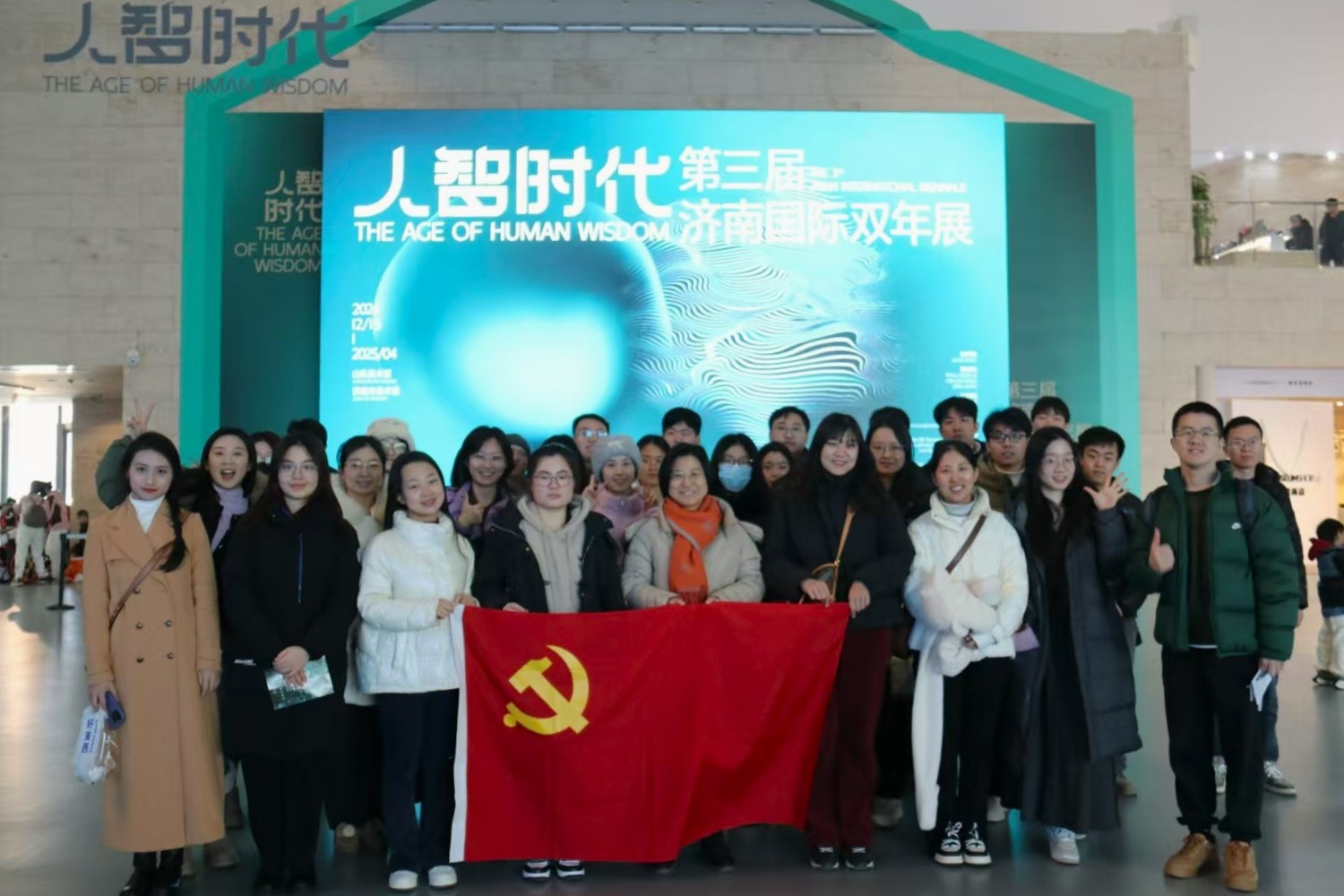 为全面贯彻落立德树人根本任务,切实提升文化育人、以美化人的育人成效,强化研究生党支部思想引领能力和战斗堡垒作用,创新探索基层党建与文化自信融合推进的生动实践,推进研究生思政教育与五育并举互促互进、走深走实,12月27日,taptap点点官方网站专业硕士第一党支部联合学院各学生党支部共同开展了联学联建主题党日活动,活动以“研·课程思政:五育并举强青年力量,文化自信筑时代新梦”为题,组织50余名本硕博党员前往山东美术馆参观第三届济南国际双年展,学院党委副书记马燕、辅导员班梦姣和吕汶鑫带队参与本次活动。
