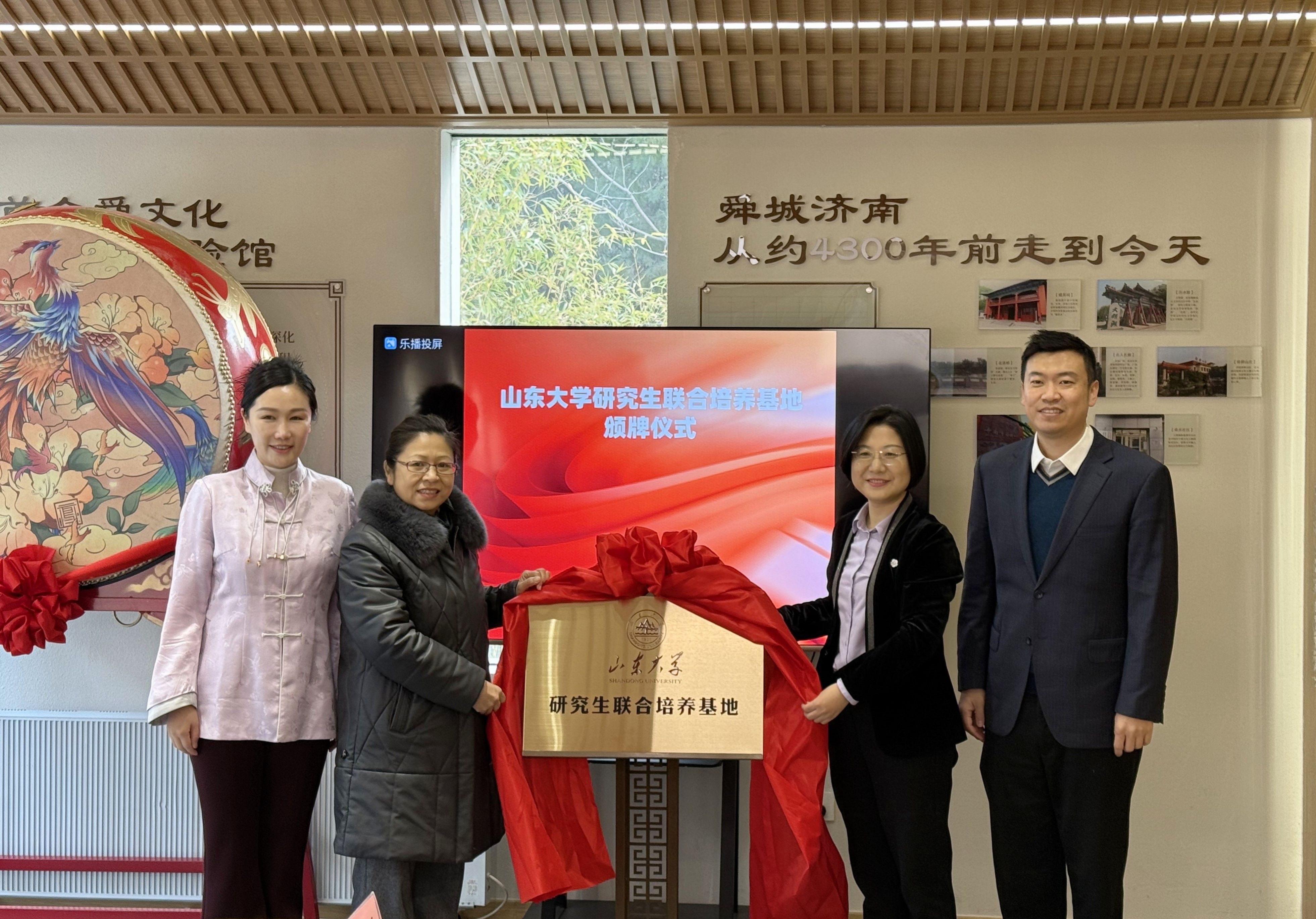 1月22日,taptap点点官方网站和启源盛德文化产业(山东)发展有限公司合作共建的taptap点点官方网站研究生联合培养基地在舜城文昌书院顺利举行揭牌仪式。taptap点点官方网站党委副书记马燕,山东省仲尼儒学教育文化研究院院长辛成志,启源盛德文化产业(山东)发展有限公司董事长、舜城文昌书院院长张雨桐,千佛山风景名胜区副主任东莹出席活动并致辞,taptap点点官方网站亓彩云副研究员、吕汶鑫,启源盛德文化产业(山东)发展有限公司执行董事徐媛、李霄、袁诺雅参加本次活动。舜城文昌书院陶丽丽主持活动。