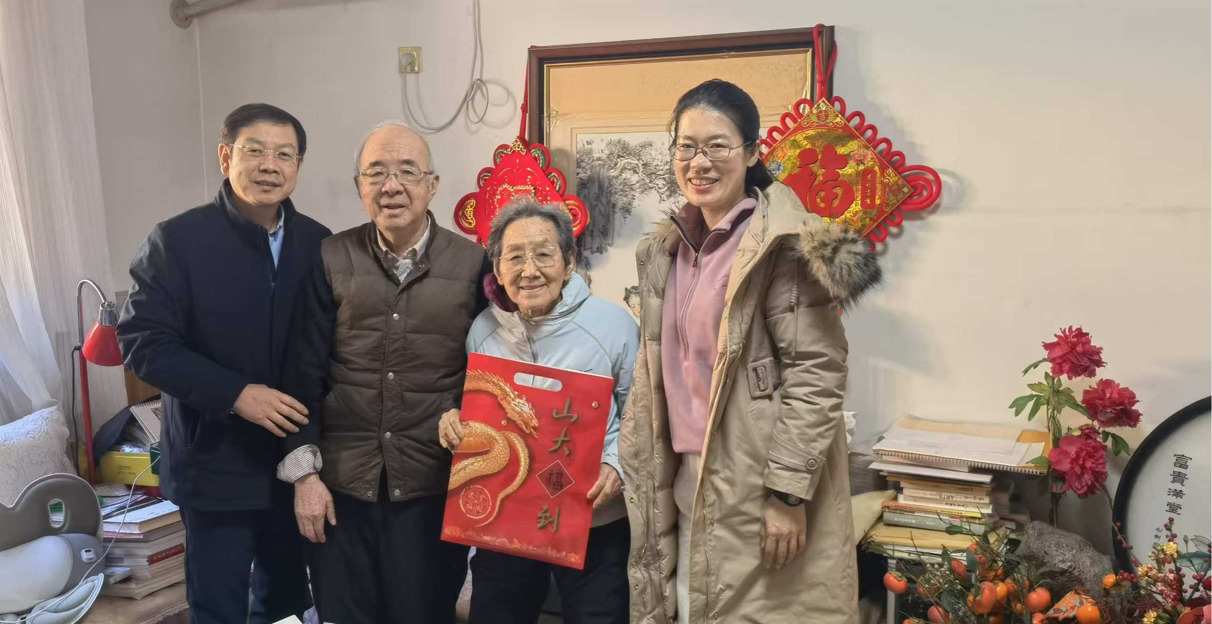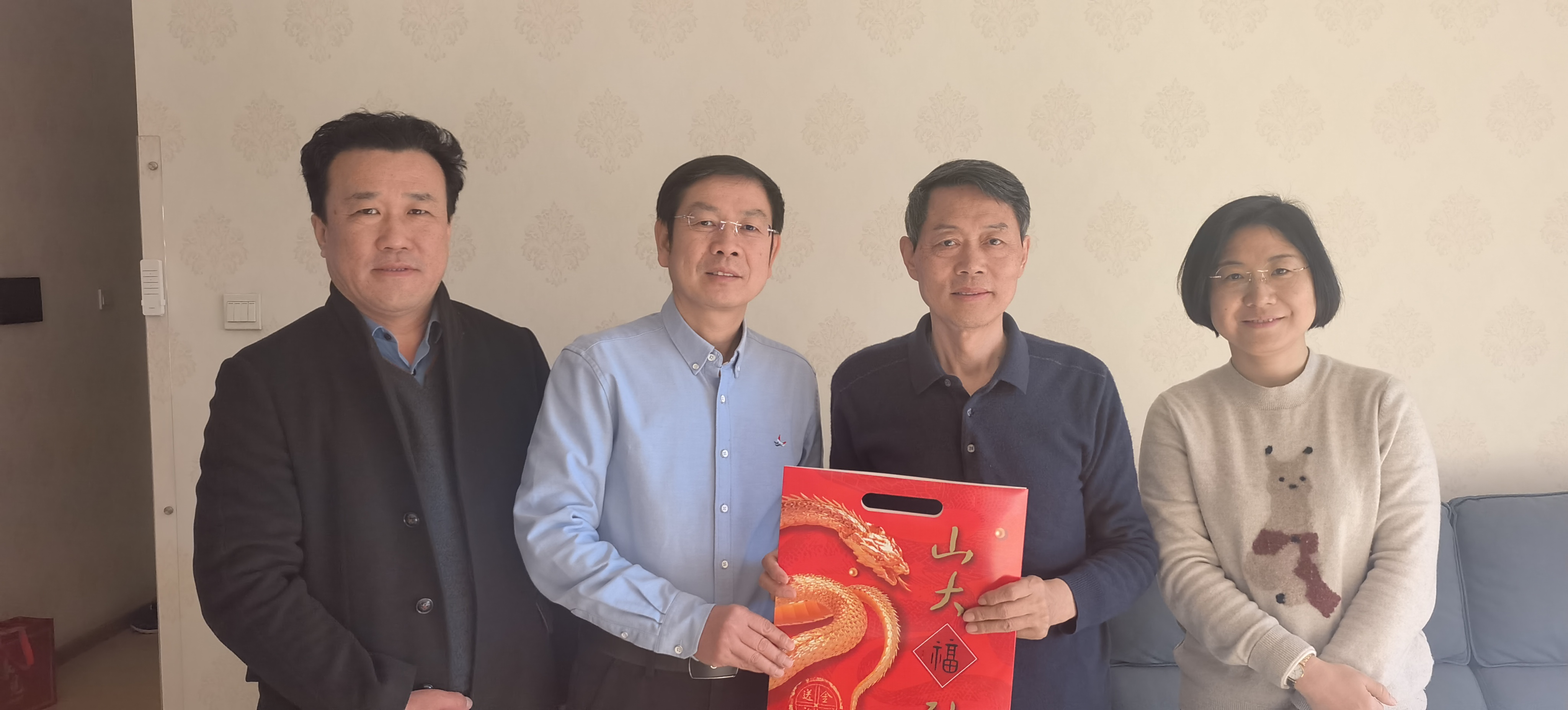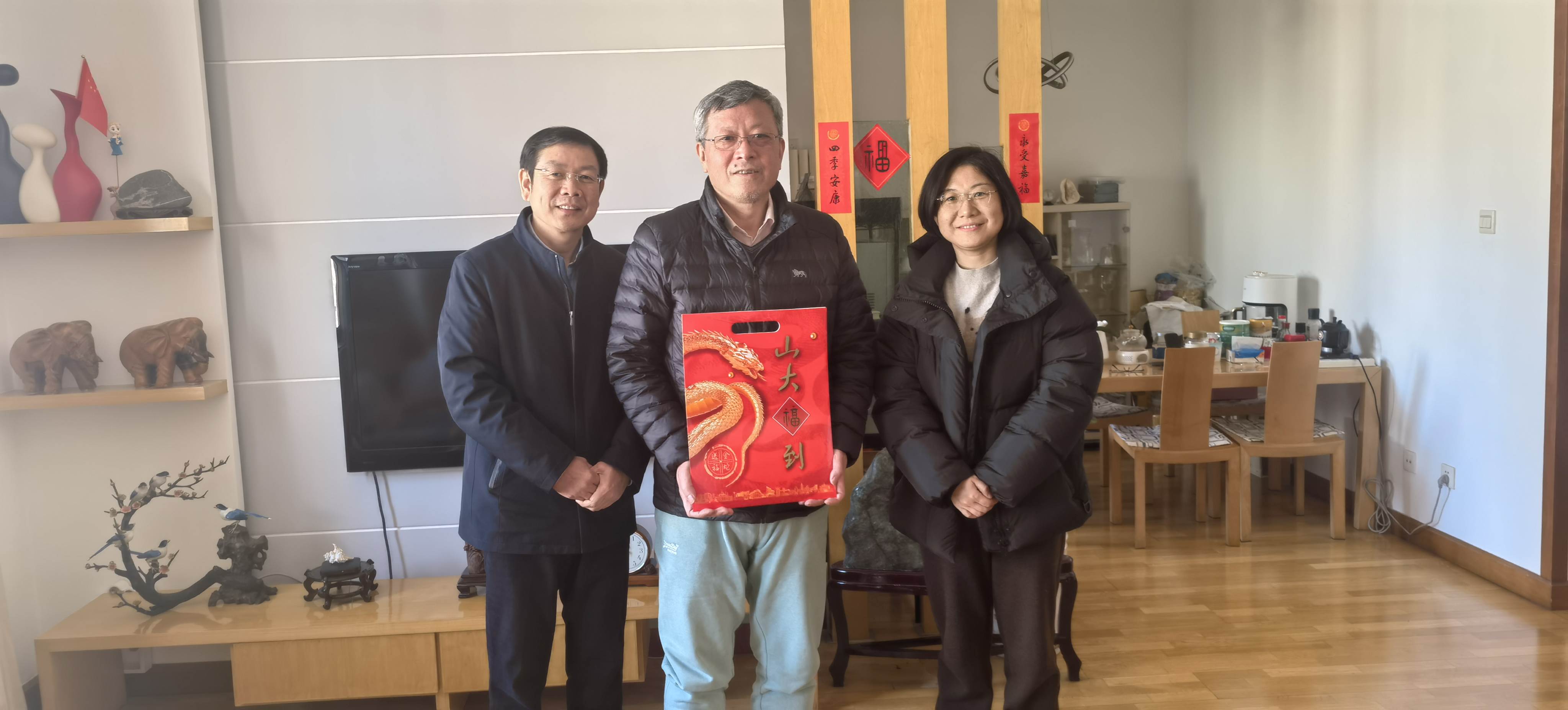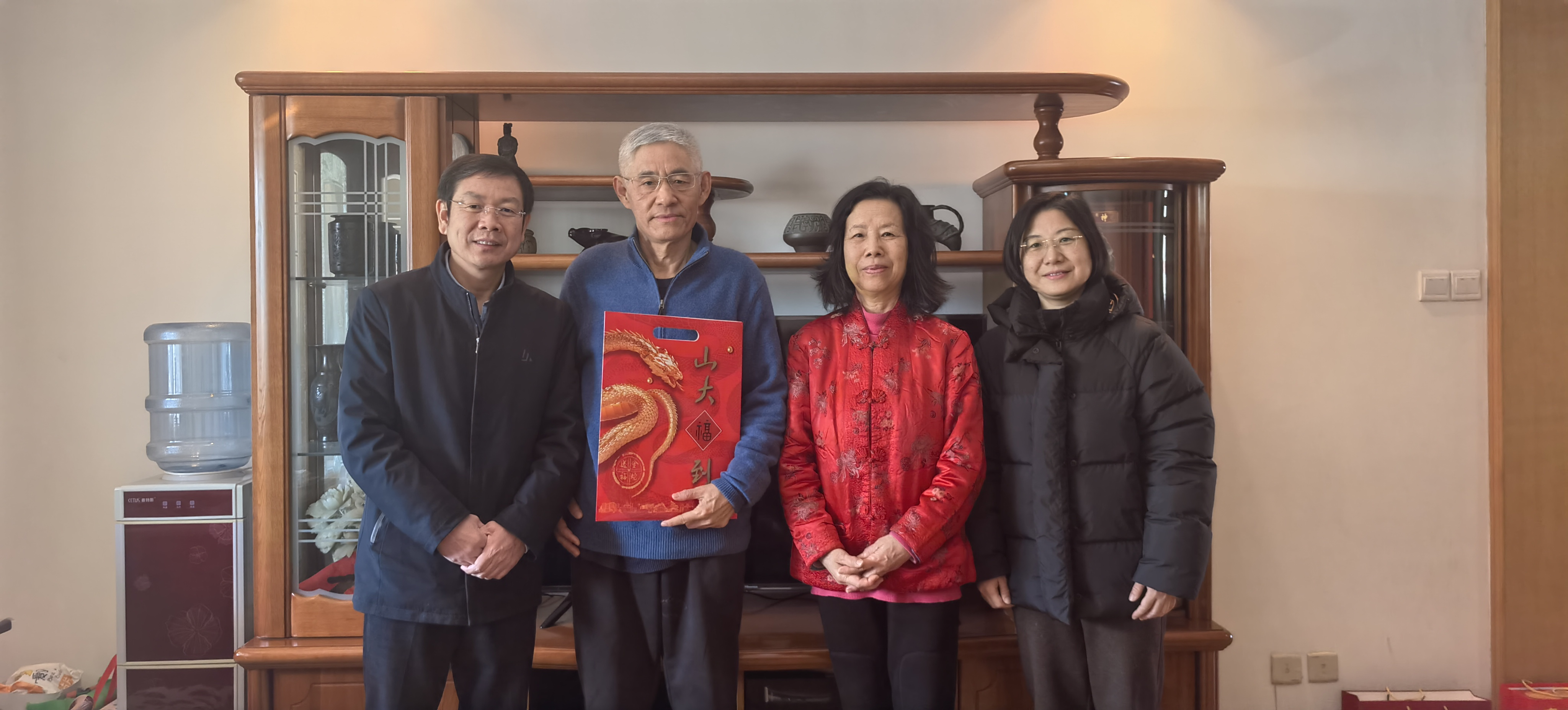 1月15日-24日期间,taptap点点官方网站开展春节走访慰问活动。taptap点点官方网站党委常委、副校长兼学院院长曹现强,学院党委书记梅强,学院党委副书记马燕、翁祥栋,学院副处级组织员何立光一行,走访慰问离退休老同志及部分专家学者,代表学院为谭鑫田、汪健、纪温玉、杨俊启、刘大均、郭立梅、刘陆鹏、傅有德、高建国、李芹、傅永军、马广海、林忠军等同志送去满满的新春祝福与融融暖意。