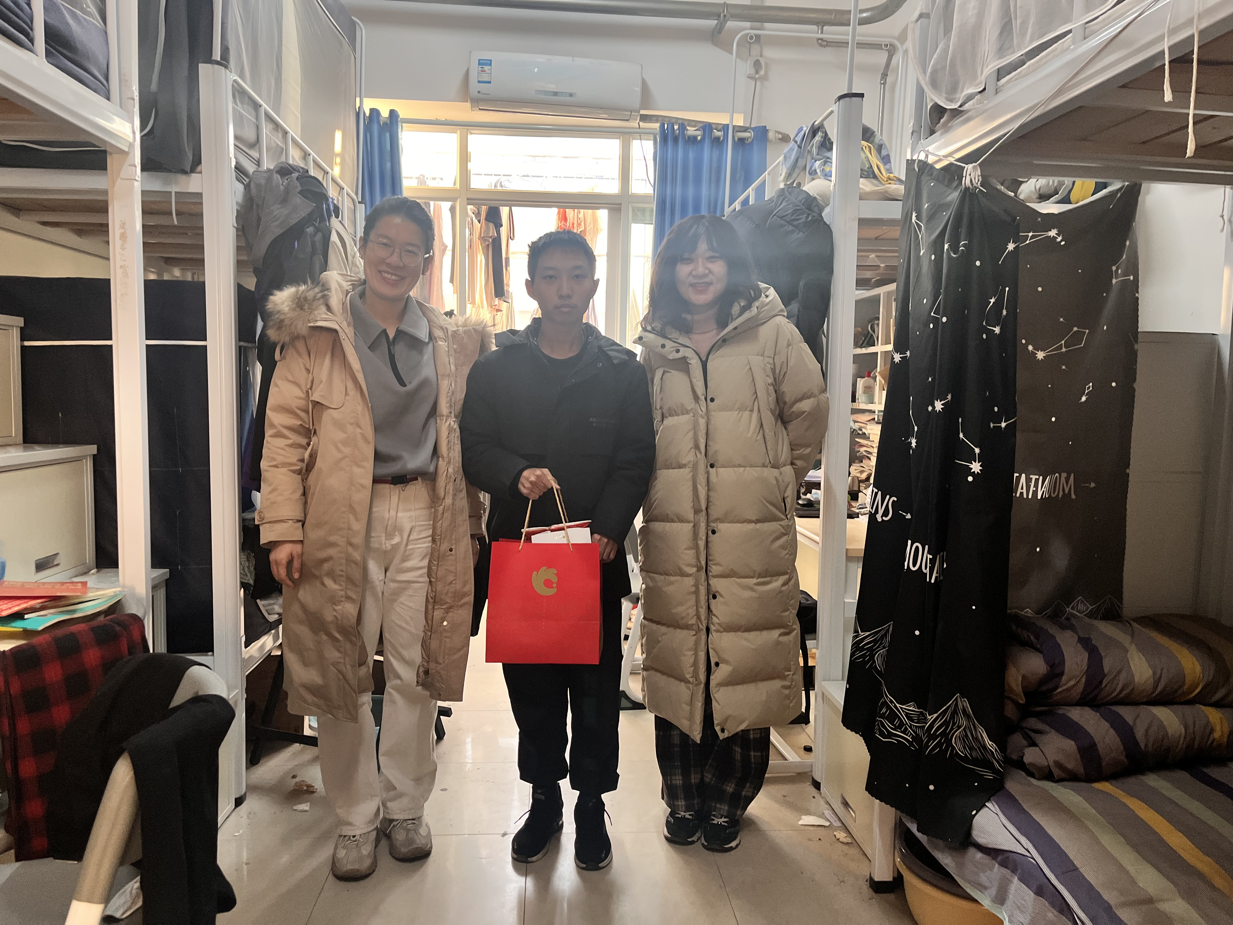 为确保留校学生度过一个温馨充实的假期,近日,在2025乙巳蛇年新春佳节来临之际,学院党委副书记马燕、翁祥栋,辅导员班梦姣、封莹、吕汶鑫深入学生宿舍,走访慰问寒假留校学生,向留校学子送去浓浓关切与新春美好祝福,并为每一位留校学生发放了学院精心准备、满载心意的春节礼包。