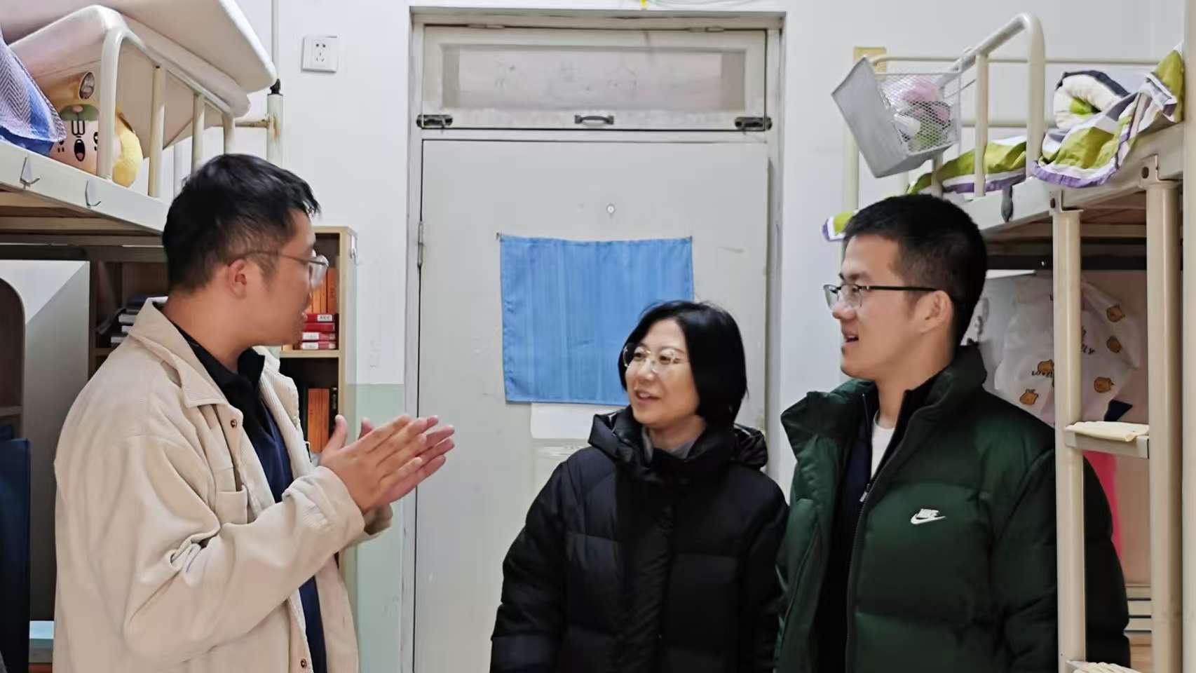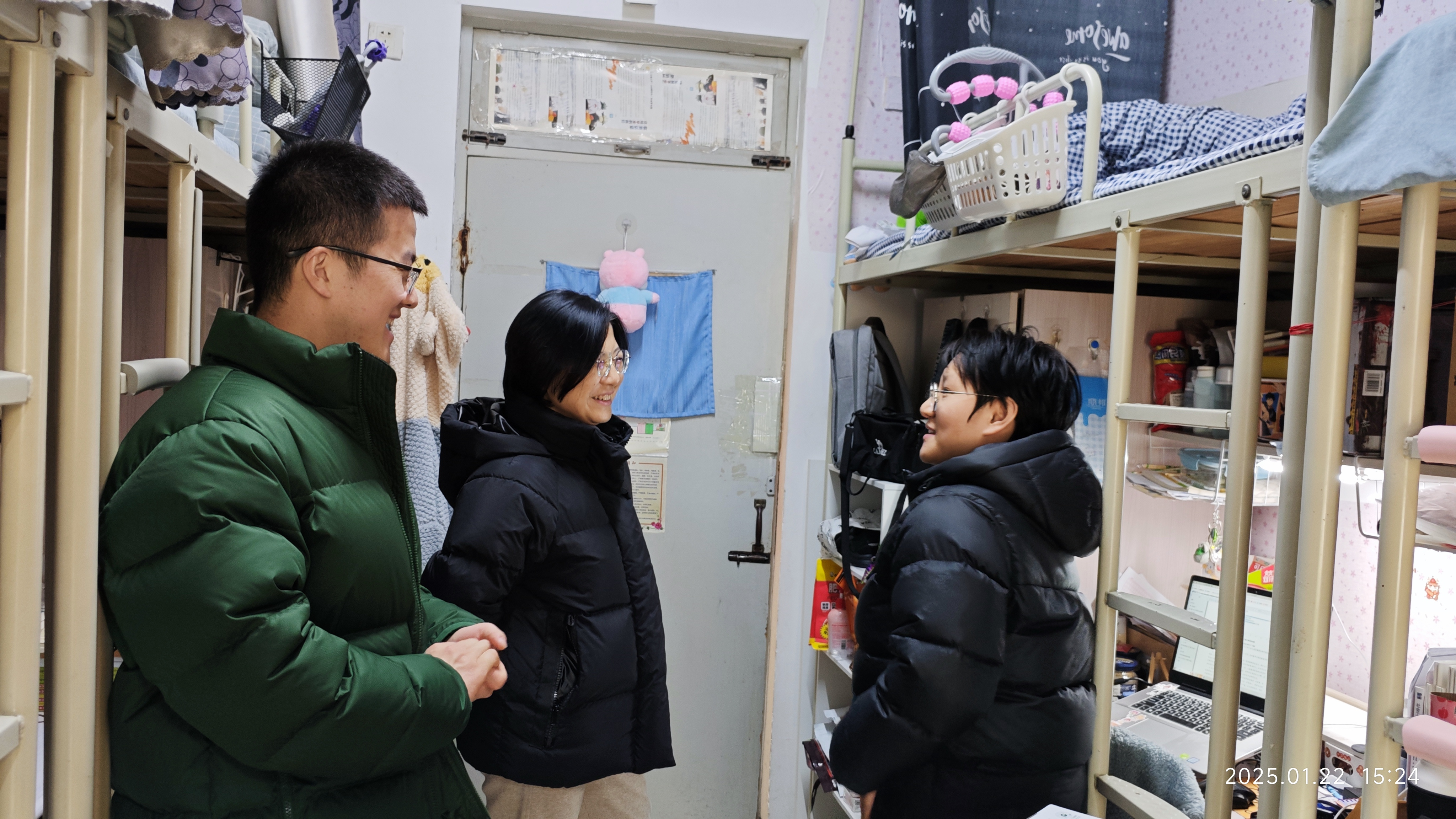 在走访宿舍的过程中,辅导员与学生进行了深切交流,叮嘱同学们假期留校一定要注意安全,在享受假期的同时也要努力提升自我,并表示学院高度重视寒假留校学生的身心健康和学习生活需求,希望同学们能够在学校度过一个踏实、暖心的假期。同学们纷纷表示会谨记老师的叮嘱,并对学院的关心关怀表达了感谢。