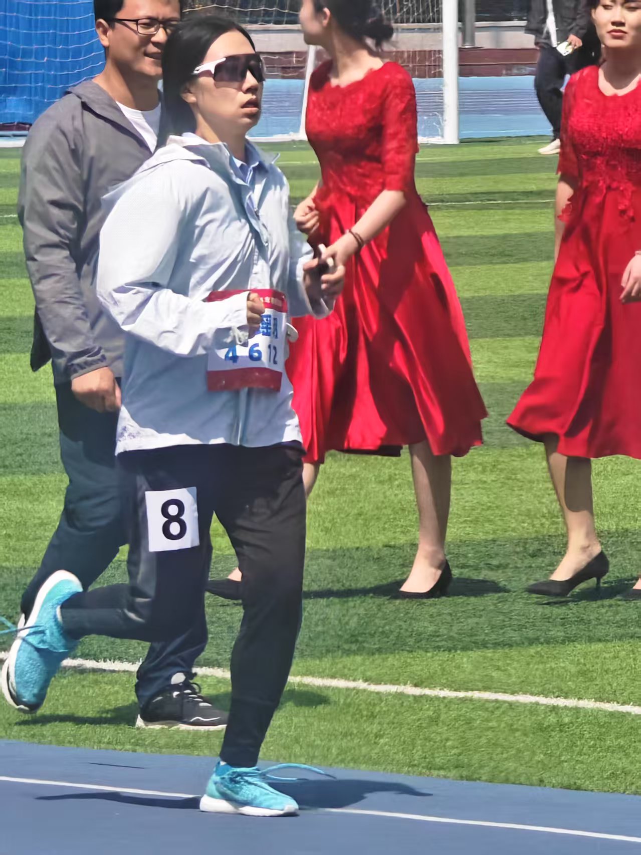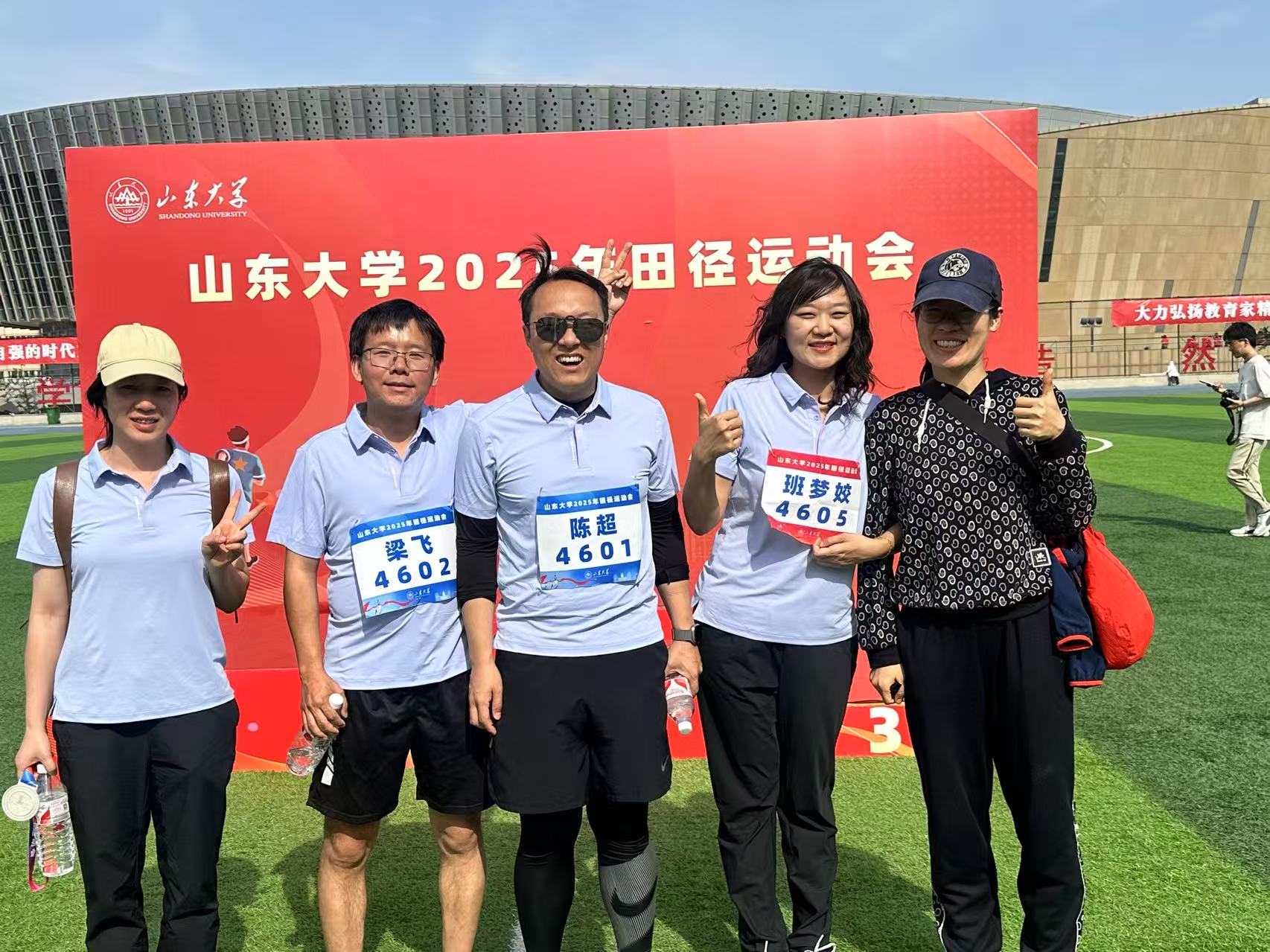 师者表率,言传身教践行体育理念。在本次运动会上,哲社教师队伍走出课堂,以赛场为讲台,展现育人者风采。教工队伍在跳远、铅球、跑步等多个项目中与其他学院展开了激烈的角逐,其中毛林林老师凭借出众实力斩获女乙教工组立定跳远亚军。在集体项目中,教师拔河队凝心聚力,4×100 米混合接力队默契配合,以实际行动传递“健康第一”的生活理念。