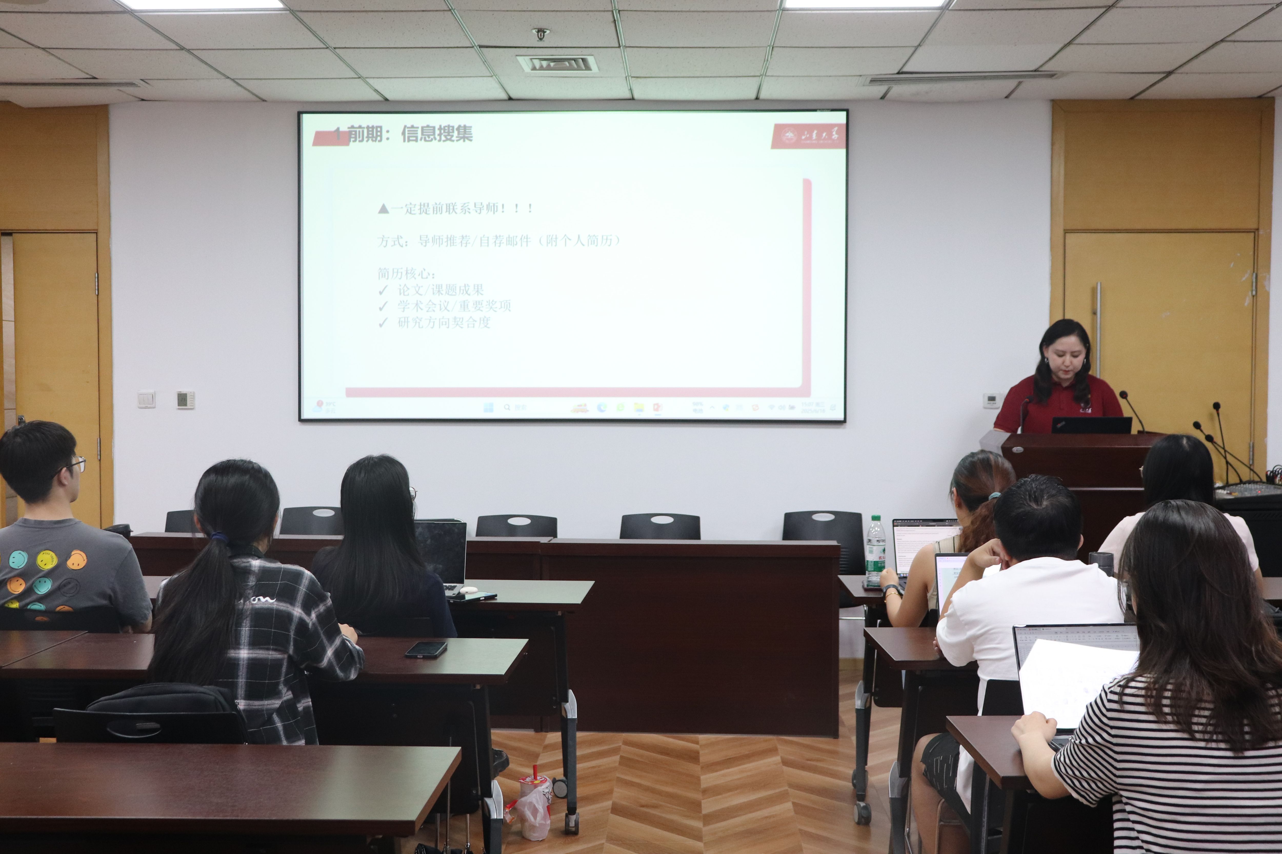 学院以价值引领为核心,将诚信教育与红色传承深度融合。5月24日,面向全体毕业生召开“诚信为本·责任为先”主题班会,通过国家助学贷款政策解读、职场诚信案例分析,引导学生树立“诚信立身、责任担当”的人生理念。6月5日,“最后一节党课”聚焦沂蒙精神传承,通过图书捐赠仪式与专题报告,生动阐释“党群同心、军民情深”的核心要义,结合校史校情讲述红色基因的时代价值,激励毕业生党员铭记“为国成才”的初心使命。此外,学院通过公众号专栏推出“嘤鸣”“他山”系列优秀毕业生专访,举办多场“研之有道”经验分享会,遴选升学深造、基层就业、创新创业等领域的先进典型,以有温度、有厚度、有力度的叙事,将爱国荣校、朋辈互助的精神厚植毕业生学子心田。