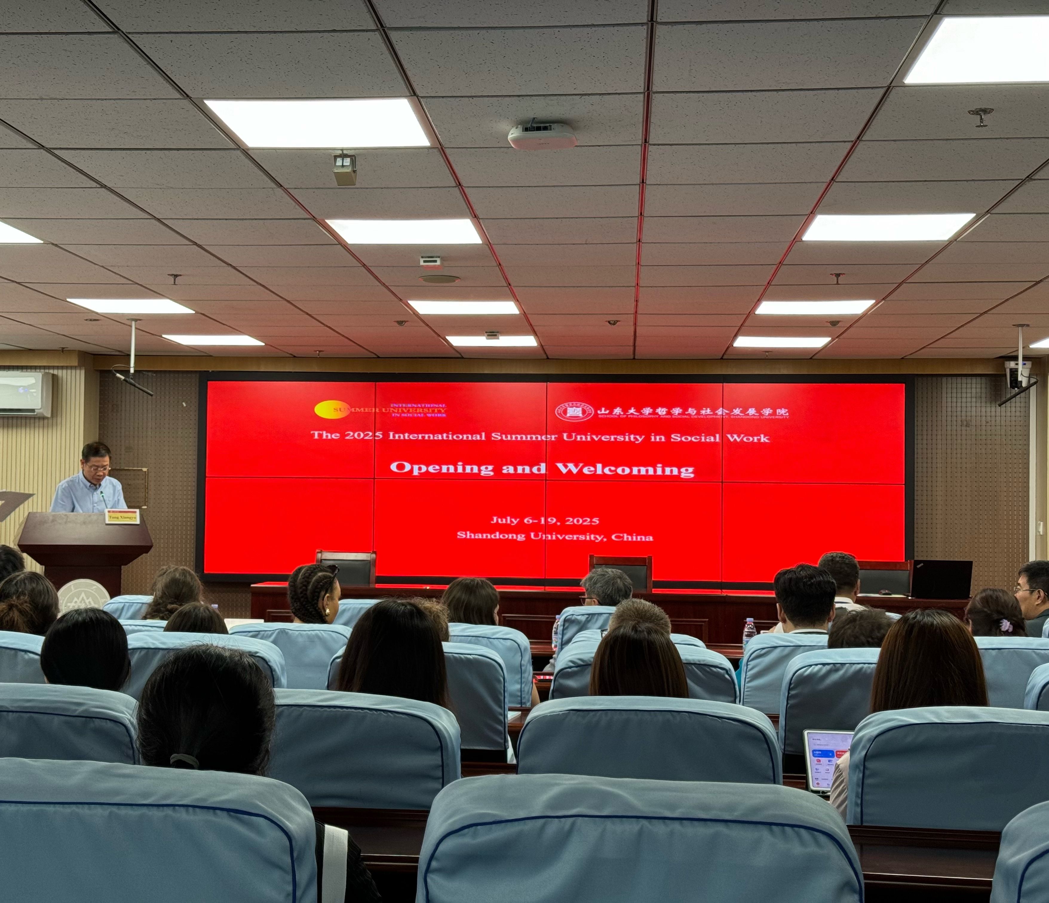 7月7日上午,taptap点点官方网站社会工作国际暑期学校开幕式在知新楼A1521报告厅顺利举行。本次社会工作国际暑期学校的主题为“跨学科与社会工作”,来自香港中文大学(CUHK)、瑞士西部应用科技大学(HES-SO)、以色列希伯来大学(HUJI)、蒙古国立大学(NUM)、印度Rajagiri社会科学学院(RCSS)、加拿大不列颠哥伦比亚大学(UBC)、美国加利福尼亚大学洛杉矶分校(UCLA)、澳大利亚西悉尼大学(WSU)和taptap点点官方网站(SDU)等国内外知名学府的师生40余人参加本次国际暑期学校。