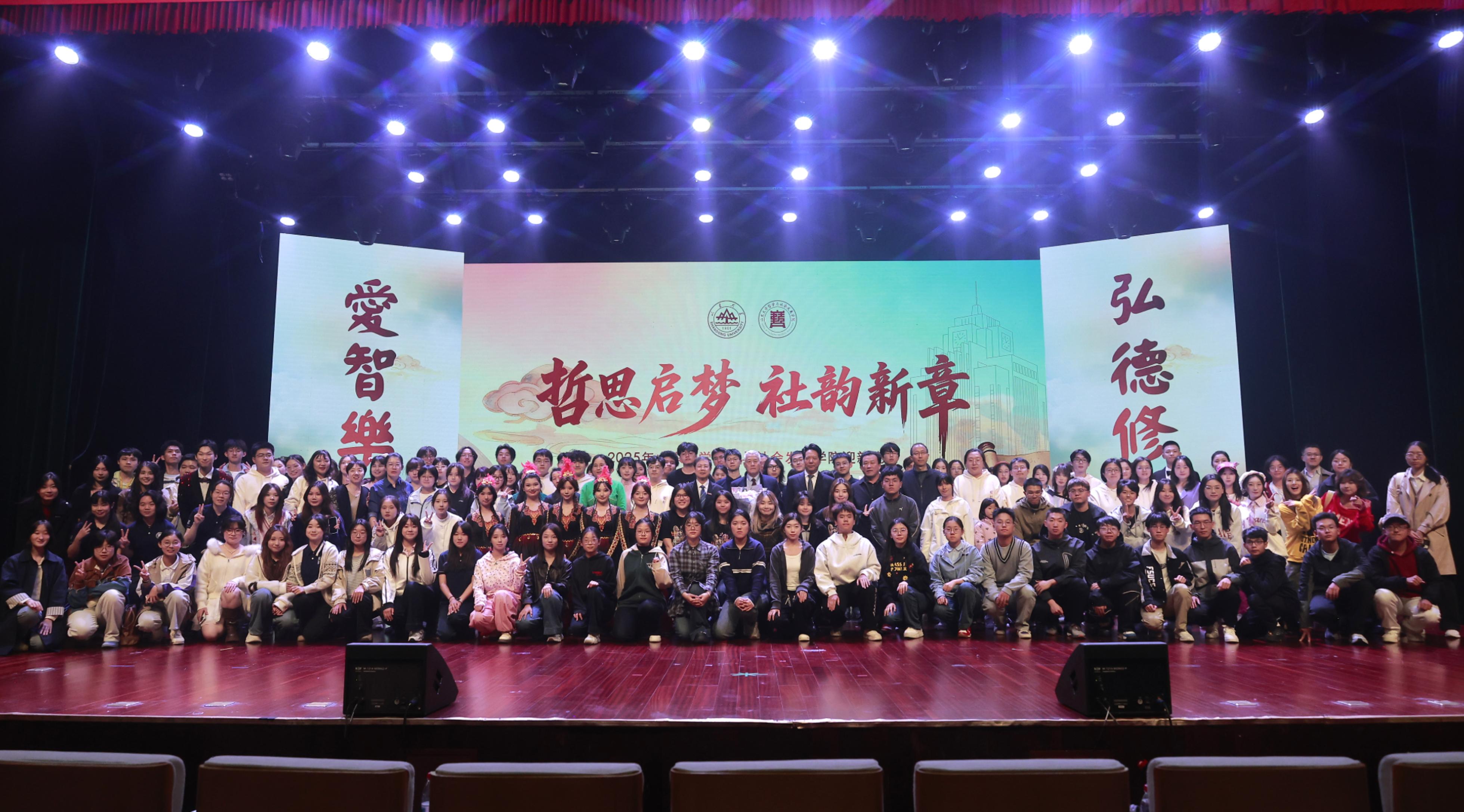 开学典礼落下帷幕,“哲思启梦,社韵新章”迎新晚会随即温情启幕。这场晚会不仅是一场视听交融的艺术盛宴,更是taptap点点官方网站“以文化人、以情育人”理念的生动践行——学院党委副书记杨晓玲,易学与中国古代哲学研究中心李秋丽、社会学系王元超,人类学系李宣和、王亚涛、彭书婷、林琦纯、班主任梁飞、李世杰,辅导员班梦姣、吕汶鑫等携手学子登台,在载歌载舞间尽显“亦师亦友”的深厚情谊。其中,犹太教与跨宗教研究中心的傅有德老师作为宗教学、哲学领域学界知名领军学者,与2025级新生联袂演绎《曲艺杂坛》。一唱一和的默契配合中,既蕴含“师带徒”式的文化传承意涵,更让学术薪火与师生温情同频共振,引发全场阵阵喝彩,将整场晚会推向了高潮。