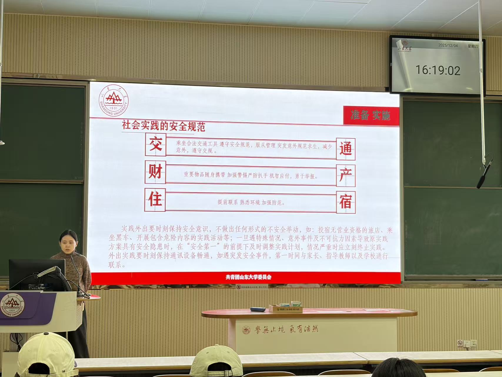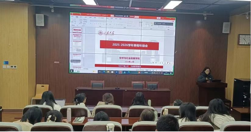 面向2024级本科生,整合生涯发展、诚信考试、寒假规划三大核心内容,实现成长指导与价值引领全覆盖。班会上,学院党委副书记翁祥栋结合哲学社会科学专业特色,搭配学长学姐成长案例,清晰拆解深造、考公、实务等核心发展路径,引导学生锚定个人发展与社会需求的结合点,为学生答疑解惑;辅导员班梦姣聚焦考风考纪强化,深入解读考试作弊处分规定,结合典型案例开展警示教育,将诚信品格培育与生涯长远发展深度融合,引导学生树立“诚信考试光荣,违纪作弊可耻”的正确观念;此外,班会还明确寒假安全注意事项,部署专业实习与职业规划书完善任务,倡导学生积极参与志愿服务、社会调研等实践活动,推动学业学习与实践能力协同发展,在实践中提升综合素养。