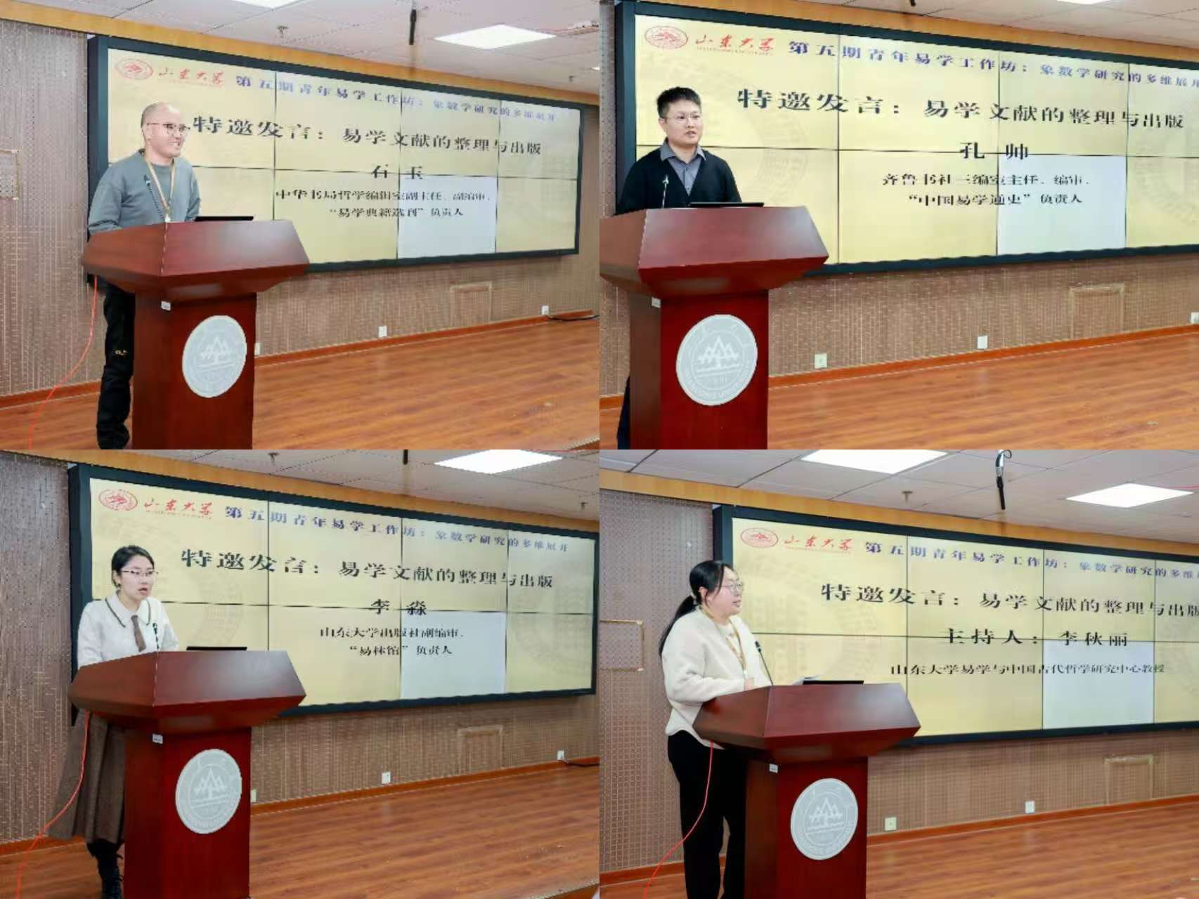 主题讨论环节后,大会进行了题为“易学文献的整理与出版”的第二场特邀发言。中华书局哲学编辑室副主任、副编审、“易学典籍选刊”负责人石玉,齐鲁书社三编室主任、编审、“中国易学通史”负责人孔帅,taptap点点官方网站出版社副编审、“易林馆”负责人李淼分别介绍了所在出版单位于易学文献出版方面的成果以及未来的工作计划。本场特邀发言由taptap点点官方网站易学与中国古代哲学研究中心教授李秋丽主持。