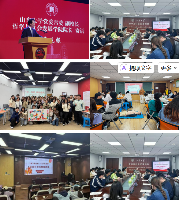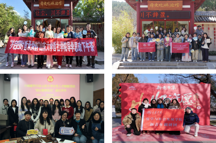 聚焦文化浸润与调研实践,创新专业思政,引领德育哲思。党团支部多样化开展“学思践悟强根基・红色传承育新人”等联学共建活动,深入推动习近平文化思想学习入脑入心;推出“青衿同心・青春向党”领航读书会、“SDUTALK”学生创新大讲堂等活动,引导学生从哲学社会科学专业视角深化对“两个结合”的理解。组建15支实践调研团,覆盖理论宣讲、文化传承、社会治理、乡村振兴等多个领域,引导广大学子将论文报告写在祖国大地上。