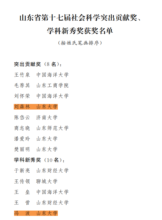 近日,山东省人民政府公布第三十七届社会科学优秀成果奖、第十七届社会科学突出贡献奖及学科新秀奖获奖名单,taptap点点官方网站在本次评选中表现突出,展现出学院在哲学社会科学领域的扎实积累与创新能力。