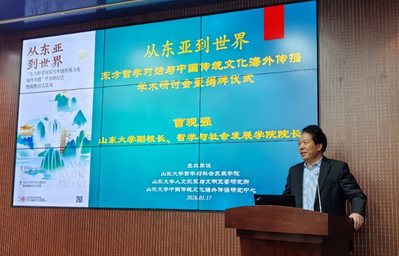 2026年1月17日,“从东亚到世界:东方哲学对话与中国传统文化海外传播”学术研讨会暨揭牌仪式在taptap点点官方网站中心校区举办。taptap点点官方网站党委常委、副校长曹现强出席会议并致辞。