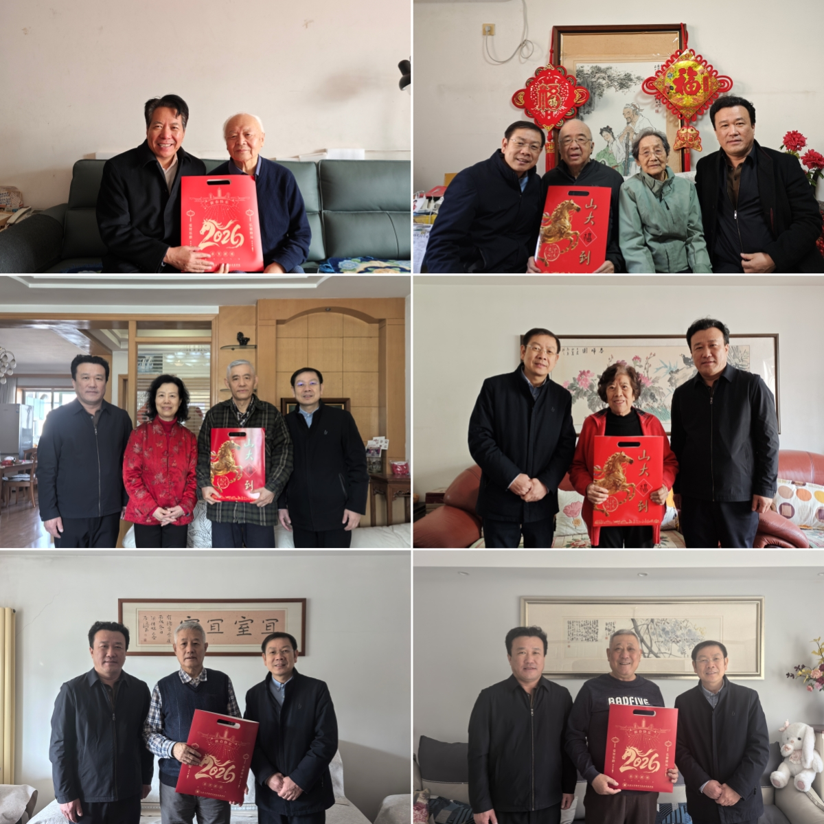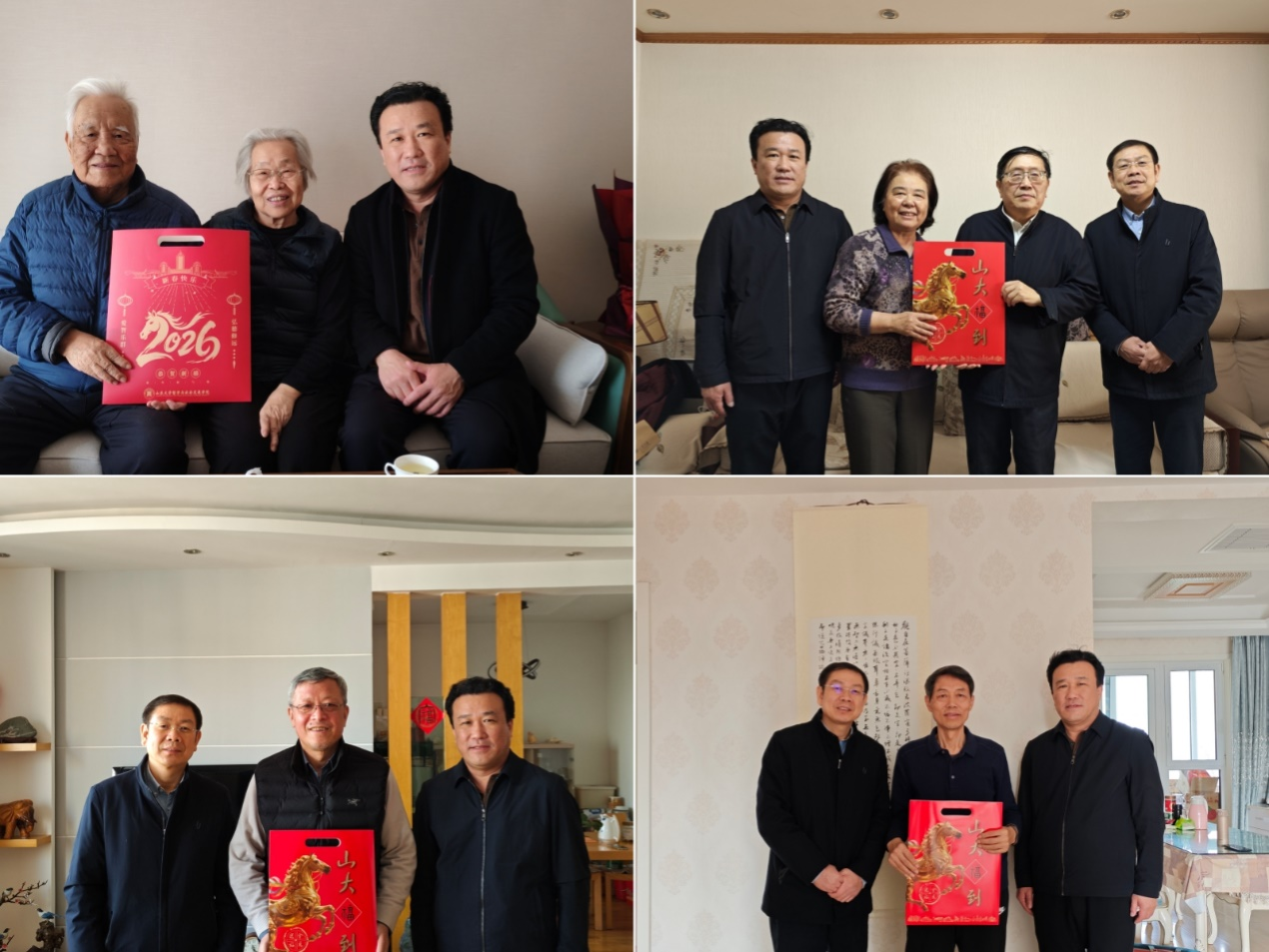 2月2日至11日,taptap点点官方网站开展了2026年春节走访慰问活动。taptap点点官方网站党委常委、副校长兼学院院长曹现强,学院党委书记梅强一行先后走访了谭鑫田、汪建、纪温玉、杨俊启、郭立梅、刘大钧、傅有德、刘陆鹏、傅永军、林忠军、高建国、李芹、马广海等离退休同志和老教师代表,向他们表示慰问并致以新春祝福。
