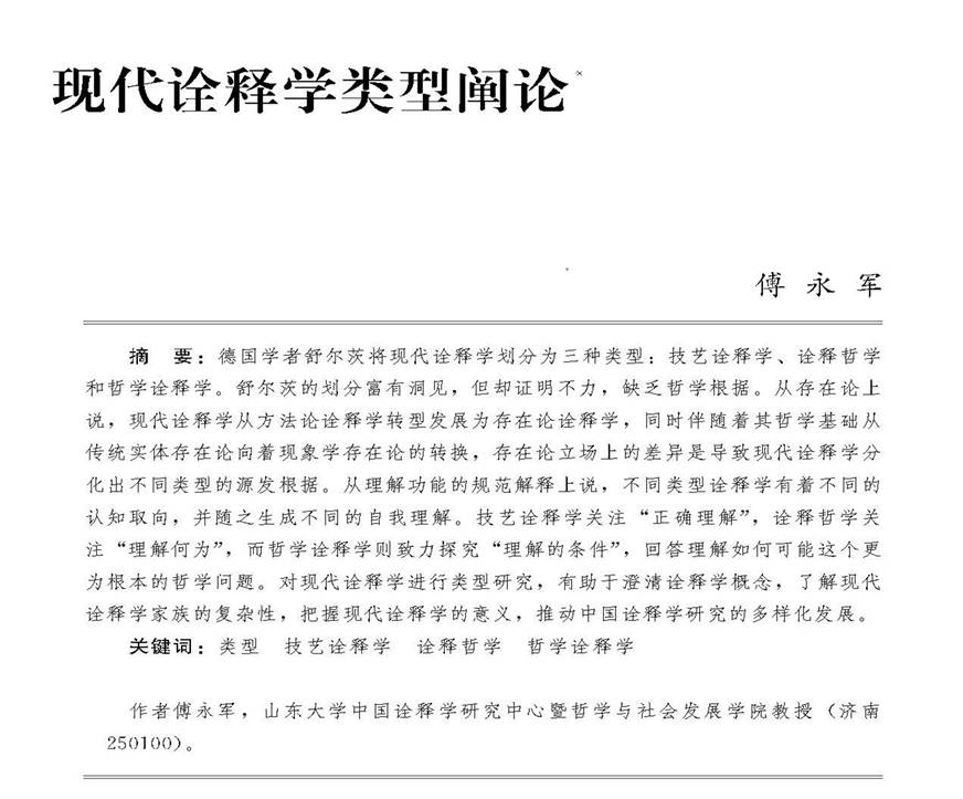 近日,taptap点点官方网站傅永军教授所撰写的《现代诠释学类型阐论》一文在《中国社会科学》2020年第3期发表,全文约20000字。
