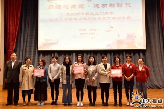 为了深入学习贯彻习近平新时代中国特色社会主义思想和党的十九大精神,继承和弘扬中国优秀传统文化,加强教职工校园文化建设,校工会、妇委会主办的“巾帼心向党·建功新时代”庆祝新中国成立70周年taptap点点官方网站女教职医务员工诗词竞赛活动在中心校区举行。校党委常委、宣传部部长桑晓旻出席活动并为获奖单位颁奖。