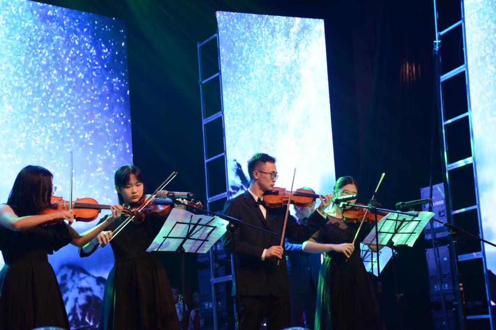 来自同道学堂的各民族同学们积极参与,活跃在台前幕后,为晚会呈现了豪迈与柔情兼备的民族风情。藏歌串烧《十年》《告白气球》《Fly》展现了藏族同学的别样风采;吉他独奏,温柔的女声静静地诉说《我怀念的》。此外,同道学堂的同学们还积极参与到实服部群舞等团体表演中。