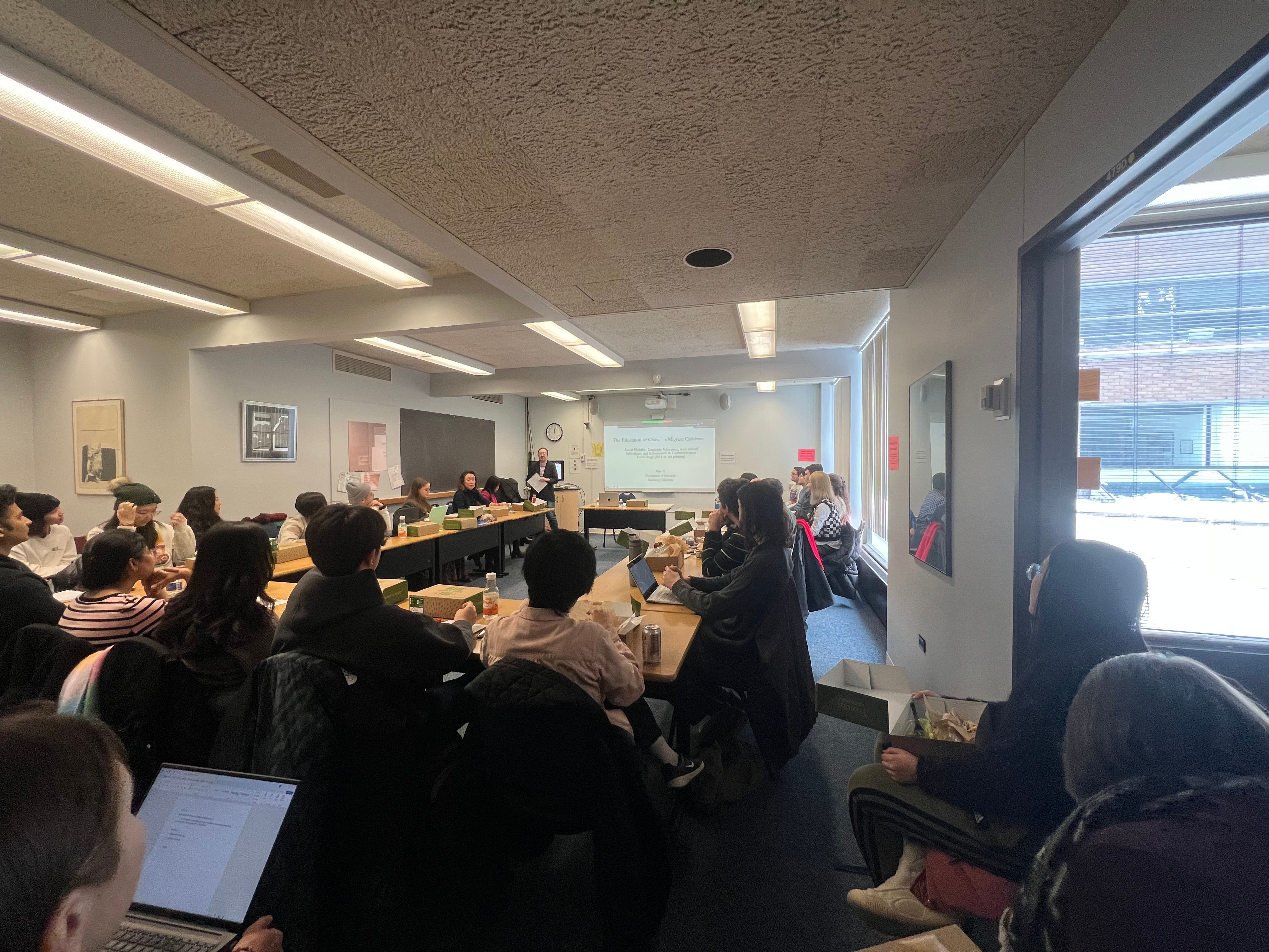 在访学期间,李淼教授以“追寻社会流动欲望:一项关于中国流动青少年学校内外经历的历时性民族志研究”为题,在哈佛燕京学社、哈佛大学社会学系、哈佛大学教育学院、纽约州立大学和宾夕法尼亚大学等美国高校和学术研究机构举办了学术讲座;在哈佛大学社会学系与费正清中国研究中心联合举办的系列研讨会中介绍研究成果。在哈佛燕京学社访学期间,李淼还承担了哈佛大学本科生课程“当代中国社会”(Contemporary Chinese Society)部分议题的授课工作,参与了哈佛大学教育学院研究生课程的授课工作、硕士生和博士生的学术研究指导工作,并与普林斯顿大学学者合作开展学术研究、撰写学术论文。