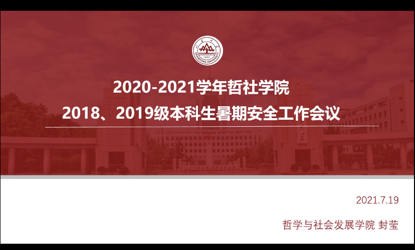 为切实做好2020-2021学年暑期学生安全管理工作,保障学生的人身和财产安全,力求学生安全、愉快度过假期,taptap点点官方网站于2021年7月19日晚7:30面向2018、2019级本科生召开暑期安全工作年级会,此次会议通过线上方式进行,由辅导员封莹主持。