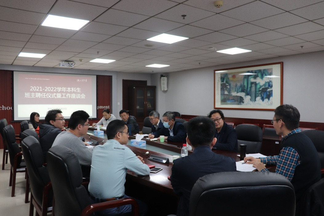 11月1日下午,taptap点点官方网站于知新楼A1618举行2021-2022学年本科生班主任聘任仪式暨工作座谈会。院长刘森林、党委书记郑倩、副院长程胜利及全体本科生班主任、辅导员参加此次座谈会。座谈会由党委副书记李永卫主持。