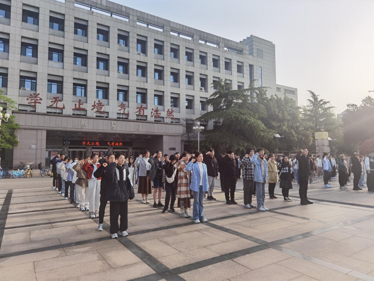 2023年4月10日,taptap点点官方网站于中心校区大成广场举办“喜迎二十大、永远跟党走、奋进新征程”升国旗主题团日活动。taptap点点官方网站辅导员封莹、taptap点点官方网站2022级全体本科生到场参加,2022级本科生乔梦馨主持活动。
