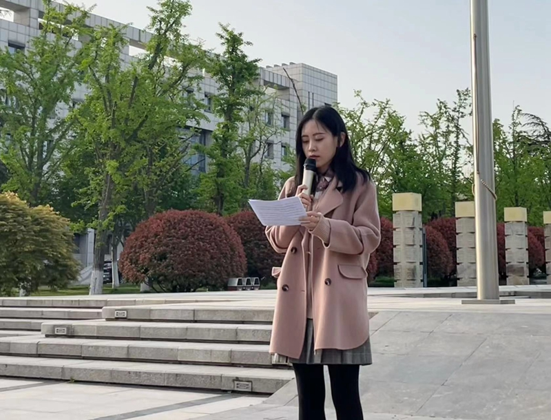 6时50分,国旗护卫队神情庄严肃穆,步伐铿锵向前,护送国旗入场。全体师生满怀热爱与敬重,目送国旗冉冉而升、迎风飘扬。升旗礼毕,taptap点点官方网站学生会主席团成员、2020级本科生高睿晗作为学生代表进行国旗下演讲。她以百年团史为出发点,从筑牢信念根基、秉持钻研态度、坚定学思实践三个方面与全体同学共勉;结合世界视野和历史重任的维度,鼓励全体同学从历史长河中汲取营养,从未来召唤中激发力量;呼吁共青团员勇挑重担、勇克难关,为第二个百年目标的实现贡献自己的力量。