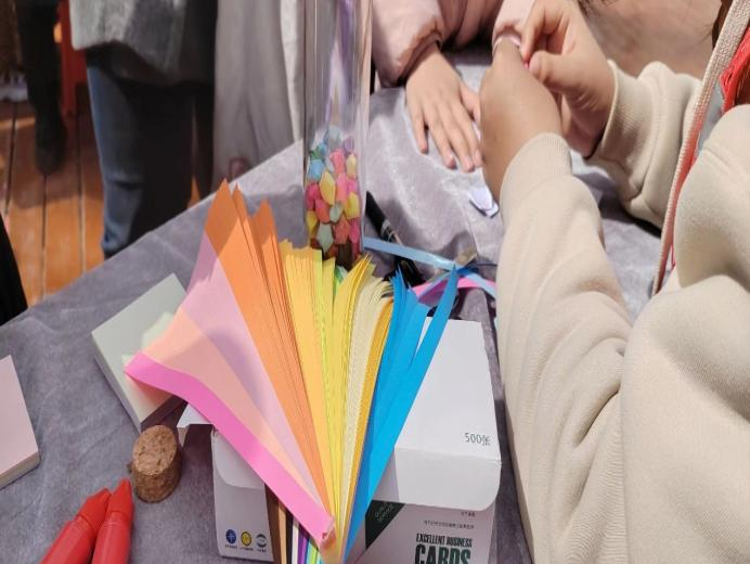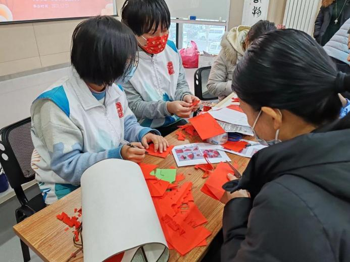 (八)智远街道基地:协会与智远街道联合在盛福百合社区参与社区主办的元旦社区游园会,志愿者们负责游园会的剪纸摊位项目,为前来参会的居民提供材料,指导制作新春气息满满的剪纸作品,同时兼顾场地布置,协调分工以及维持秩序,为社区营造良好文化氛围。